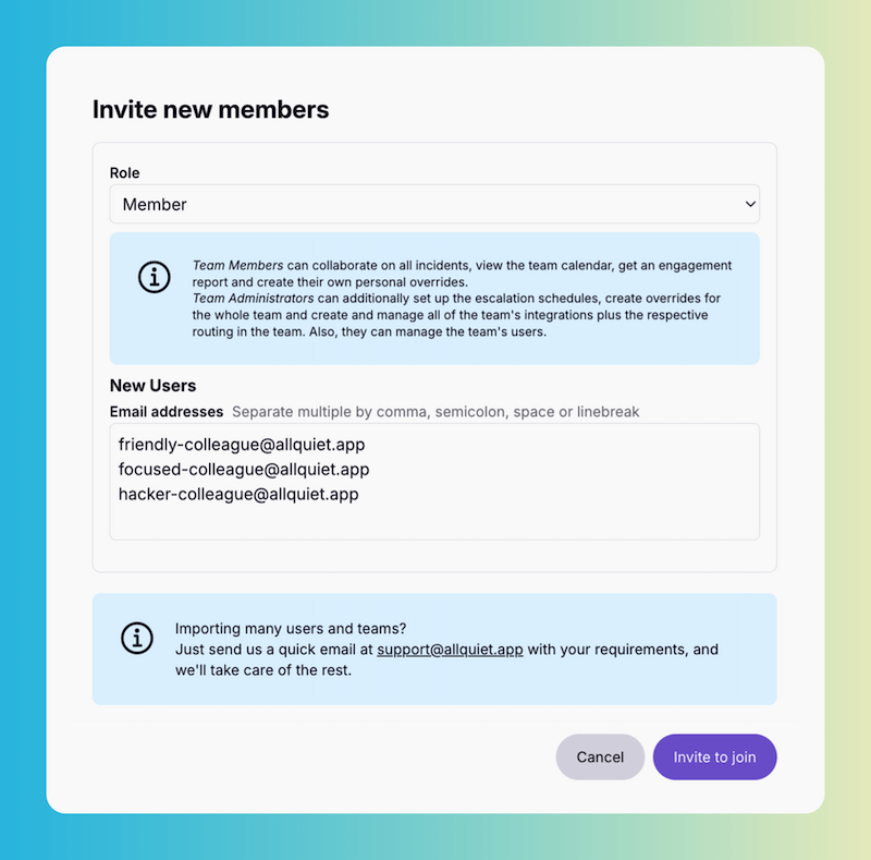 : A member can collaborate on all incidents, view the team calendar, get an engagement report and create their own personal overrides.Administrator
