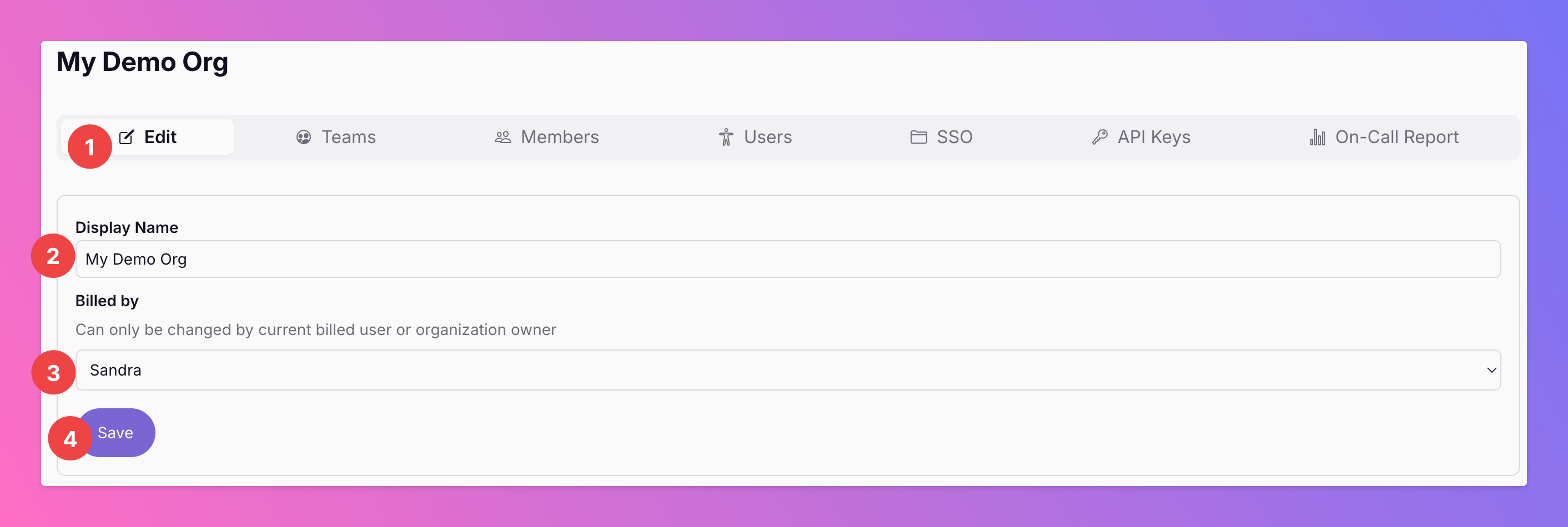 Display Name - If you are the Billable User or an Organization Owner, you can update the Billable User here.