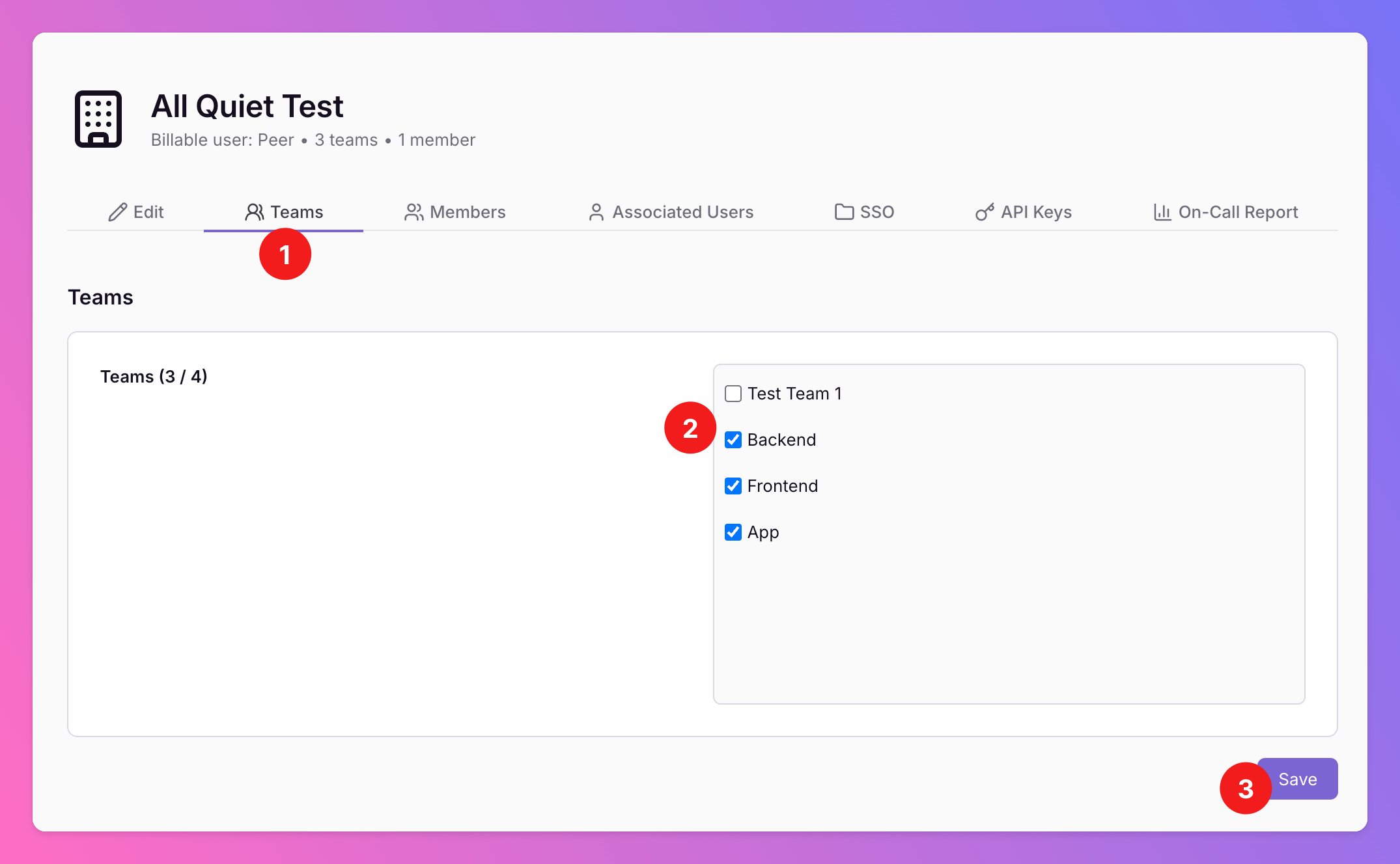 At All Quiet, Team and Organization Memberships are independent of each other. Users with Organization Memberships have rights for all teams within the organization, allowing them to interact with all incidents. However, they are not part of any schedules, escalations, or rotations, meaning they are never on-call. To include a user in a team’s on-call escalations, assign them a specific Team Membership in addition to their Organization Membership. Organization Members are not billed. Billing is based on the number of unique users with Team Memberships across all teams. You can view all billed users under “Billing & Subscription > Your current usage”. Users can have Team Memberships without having Organization Memberships and vice versa.Setting Up Your Organization