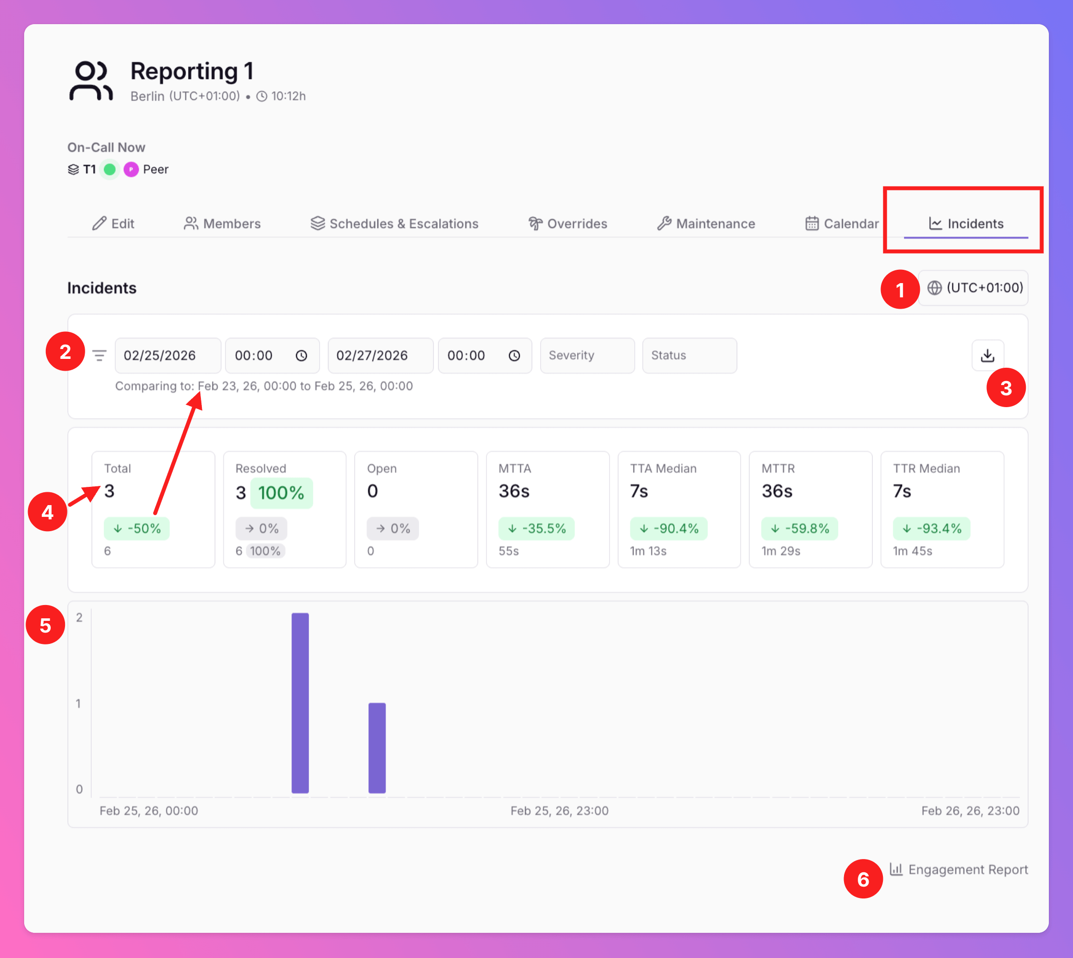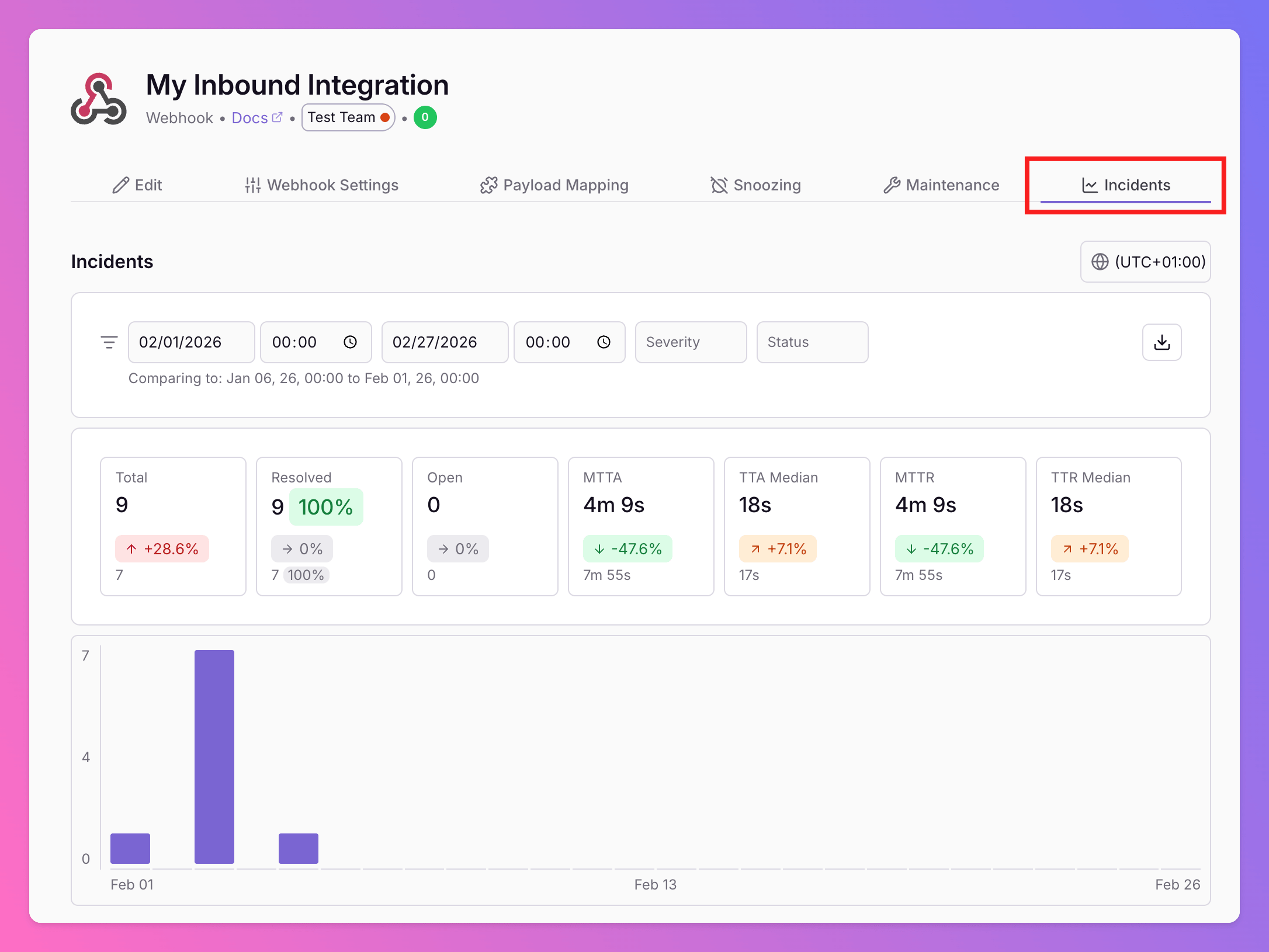 - Your Team’s incident KPIs, comparing the current time interval with the previous.