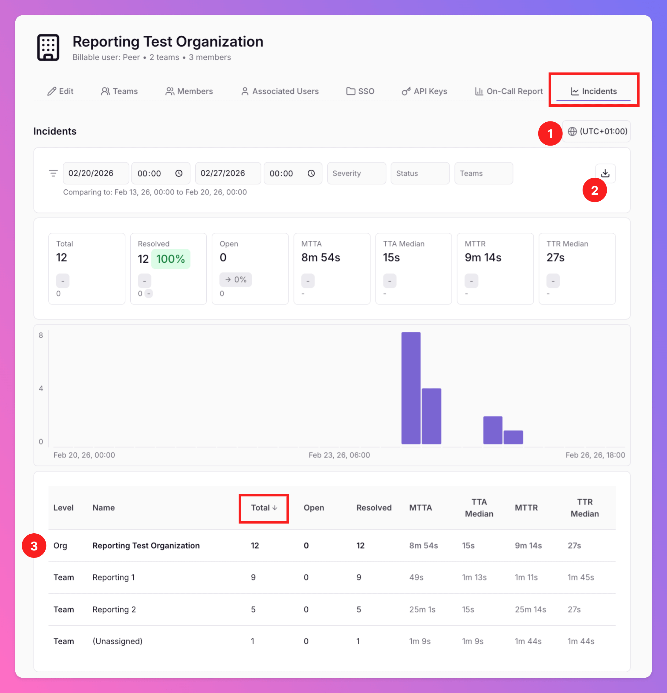 The Incident Report is visible to Team Administrators, Organization Administrators and Organization Owners.