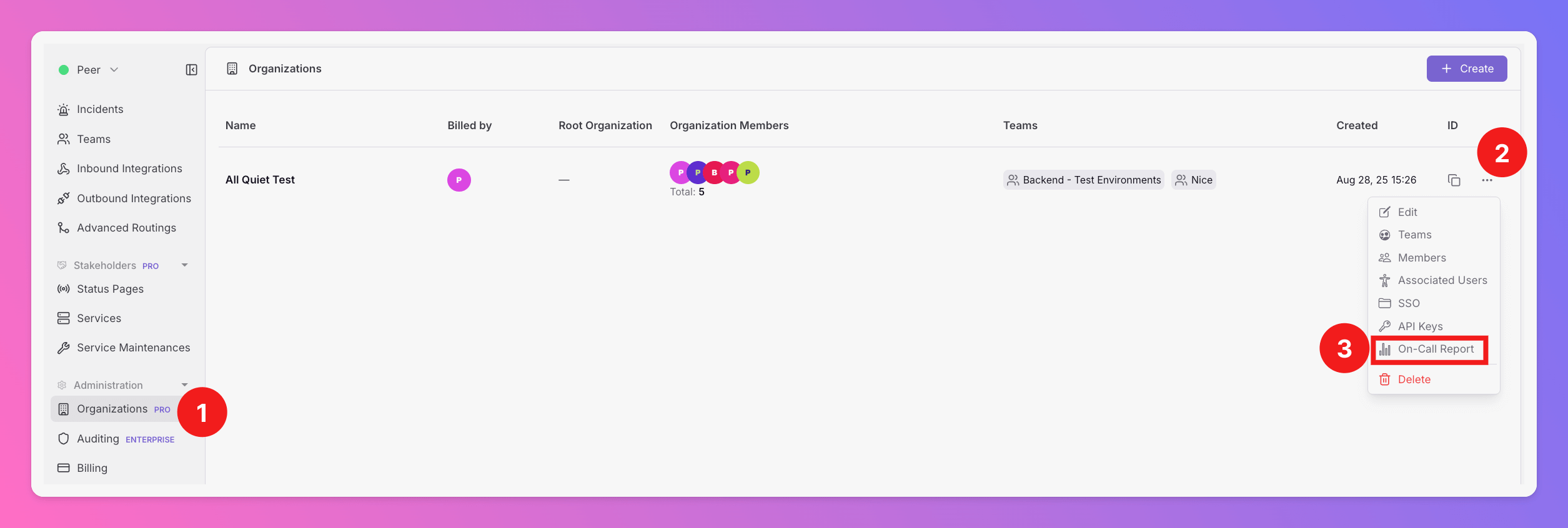The On-Call Report is visible to Organization Administrators and Organization Owners