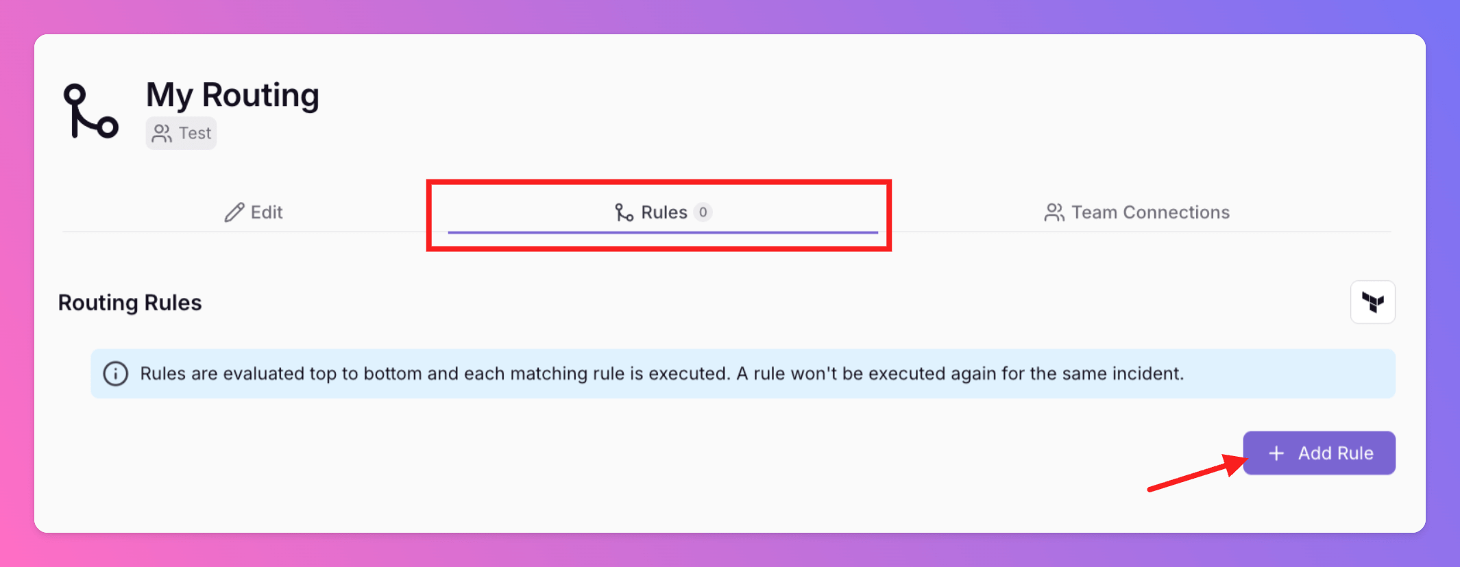 Now you can start configuring your Advanced Incident Routing by clicking on+ Add Rule and configuring your routing rules.