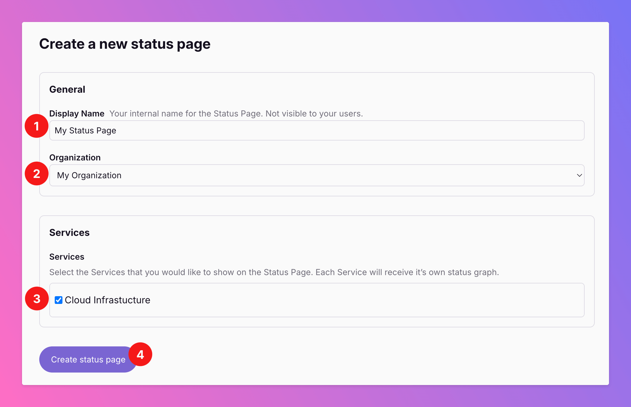 for the status page. It will only be used internally, not publicly on your status pages. - Select the
