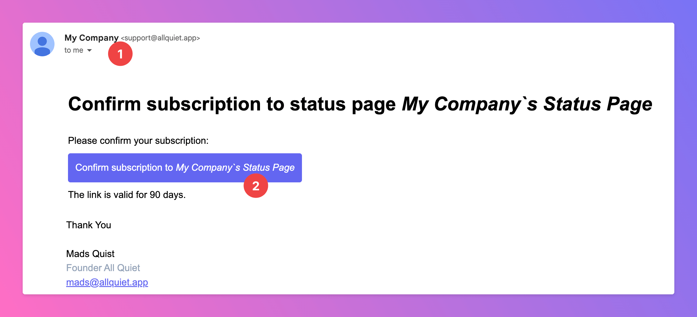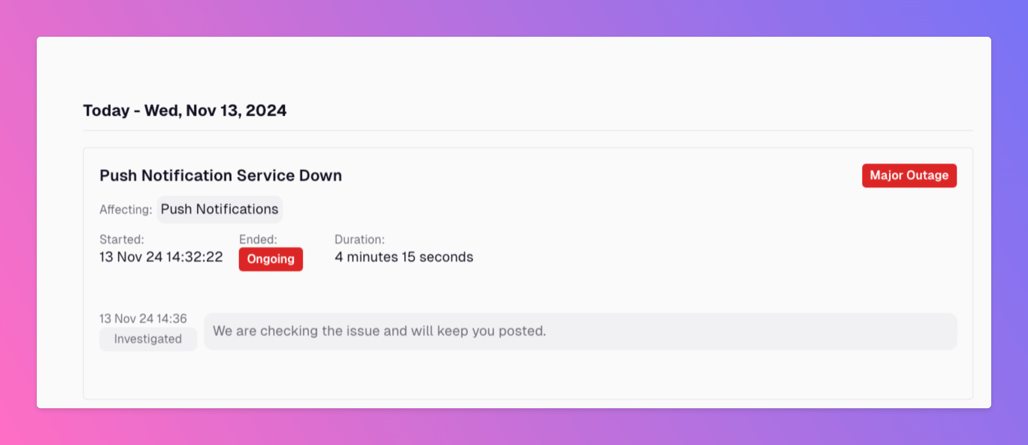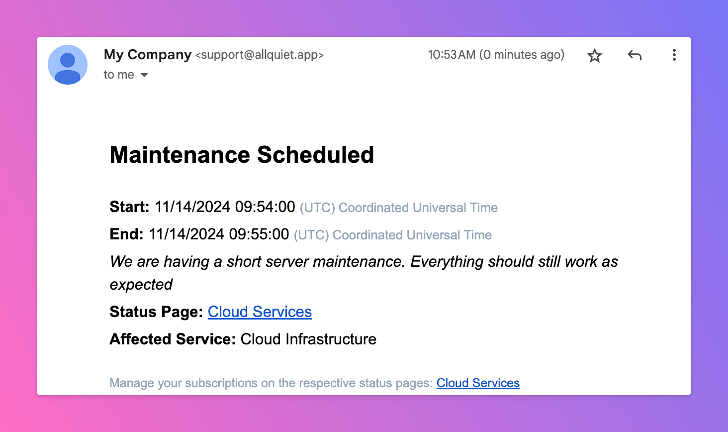 for the maintenance, visible on your status pages that feature the affected service and in the update emails for subscribers.