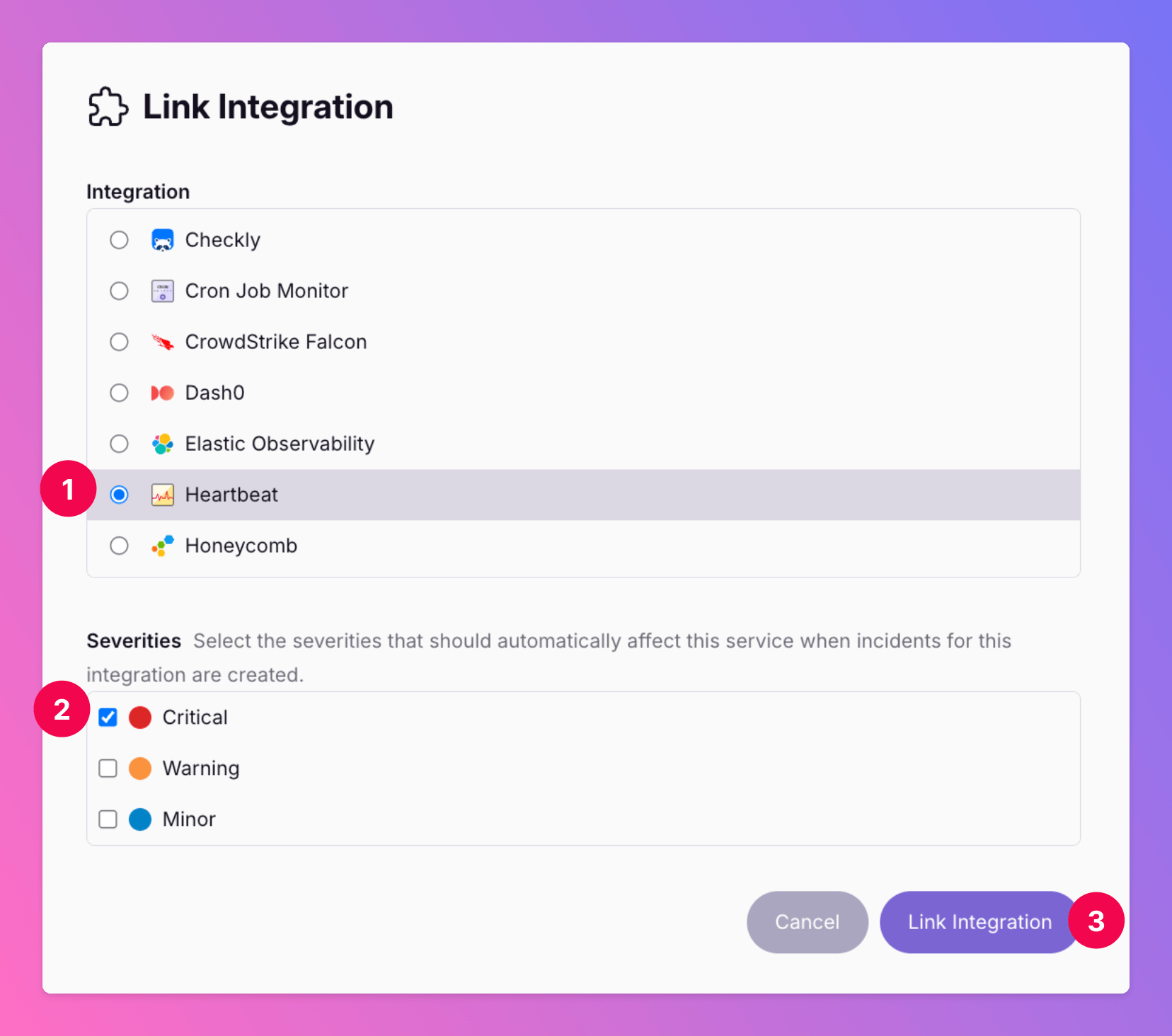 - Select the incident severities that should automatically affect this service when incidents for this integration are created