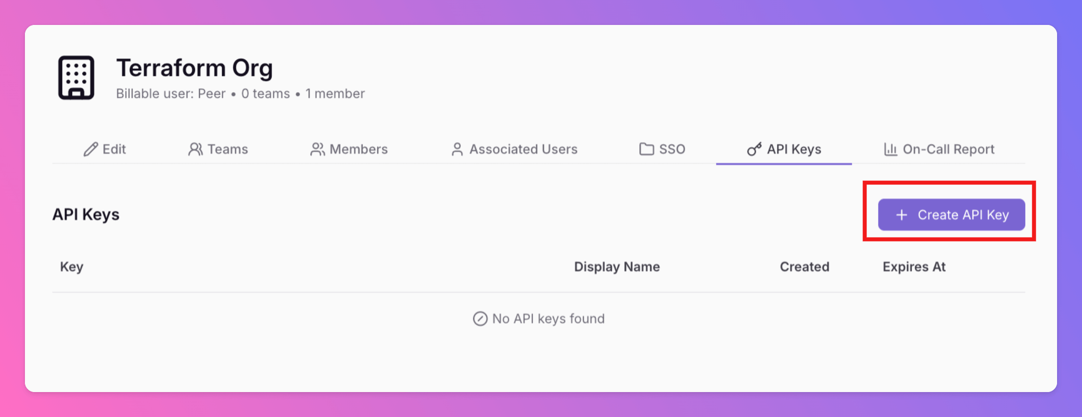 Creating an API Key requires you to be the Owner or Administrator of an Organization. To set up an Organization, please follow the related documentation.