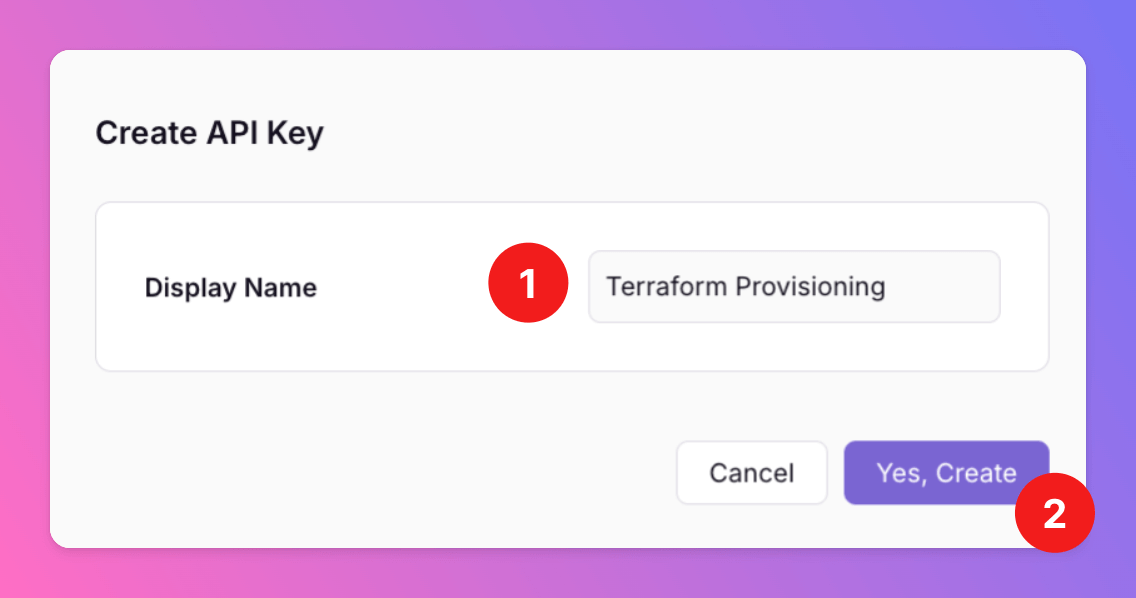 Display Namefor your API Key. - Approve the API Key creation by clicking