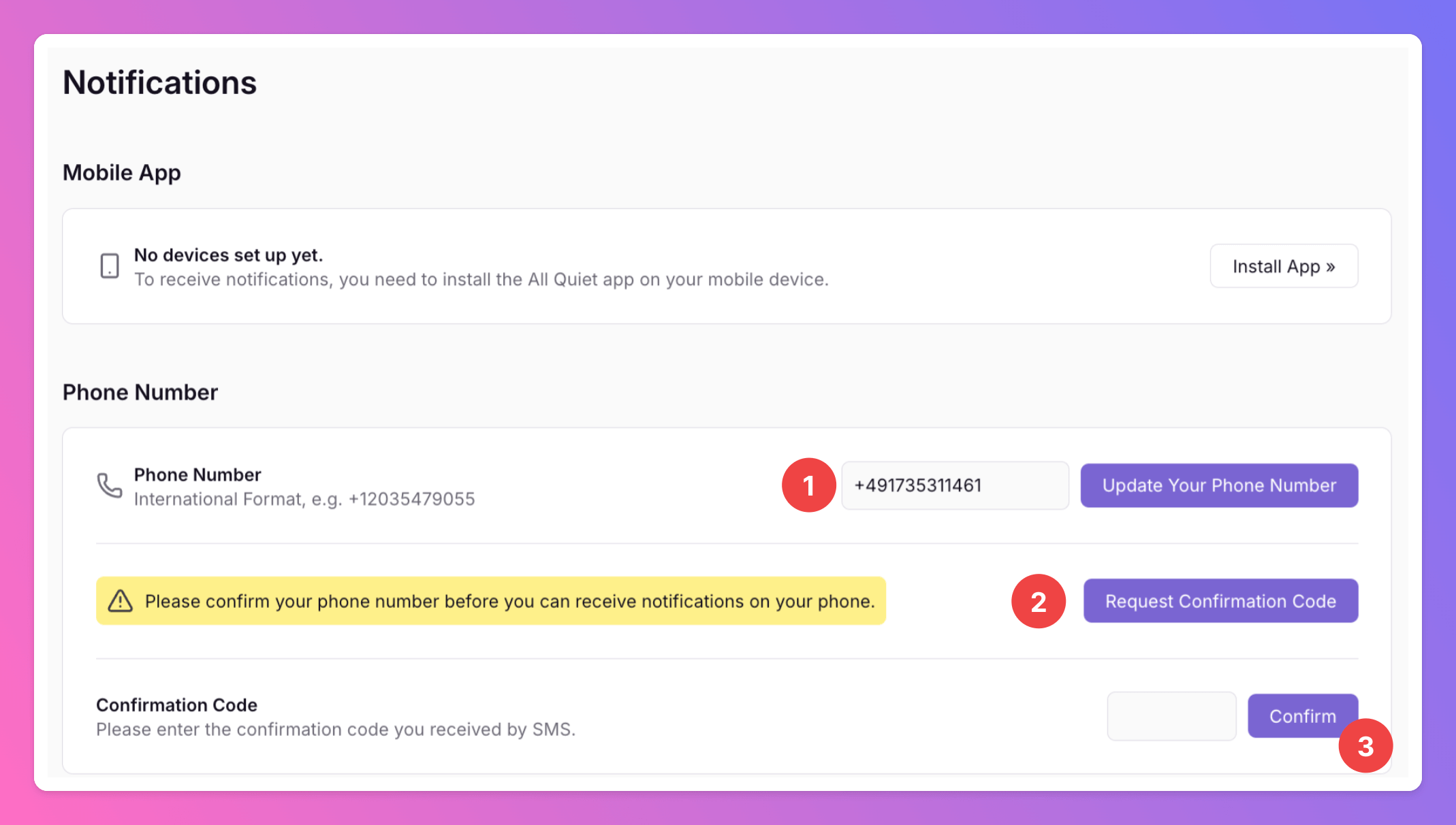 - You can always adjust these settings in the All Quiet app under notification preferences.