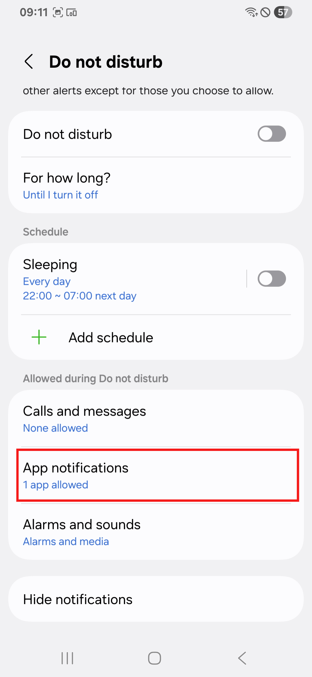 You’re forwarded to the Android system settings for Do not Disturb. Make sure to allow “App notifications” for All Quiet.