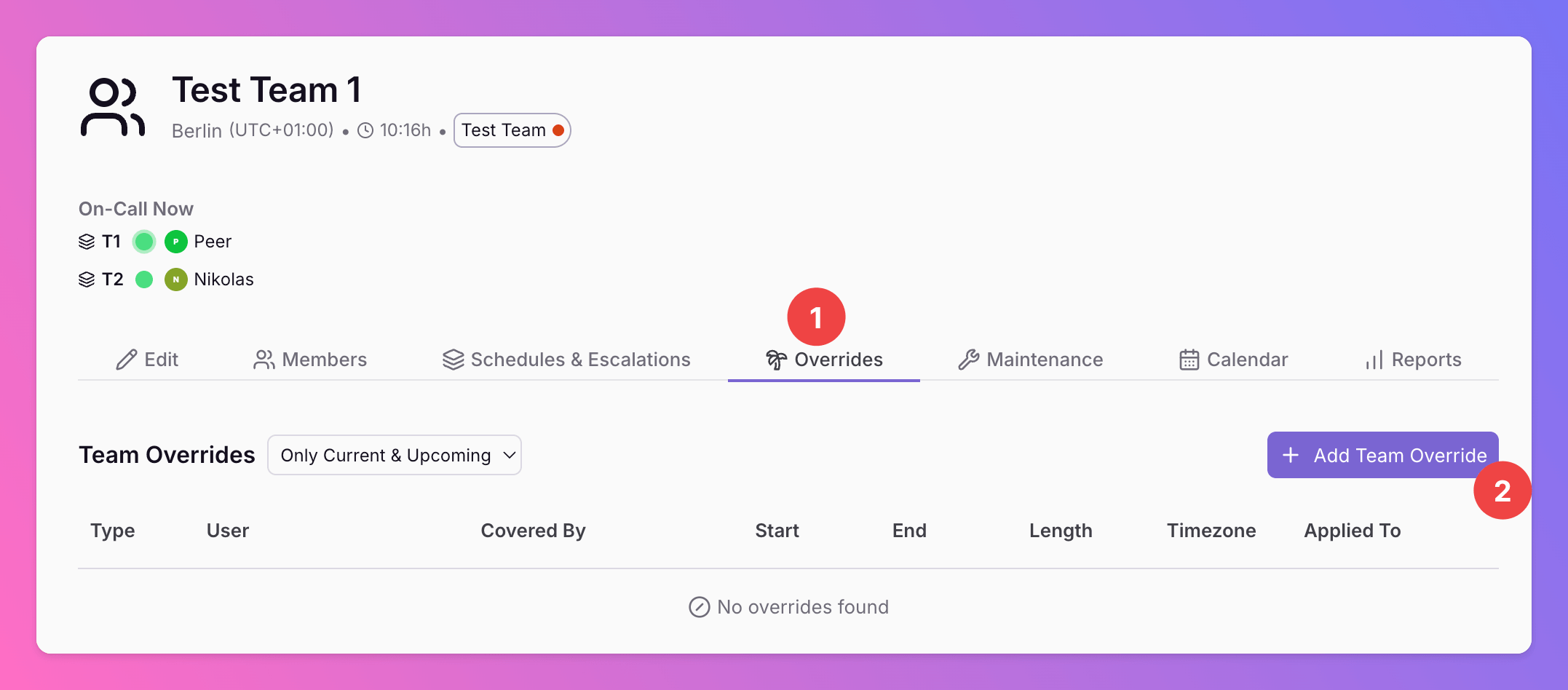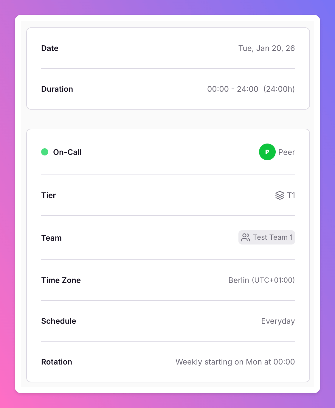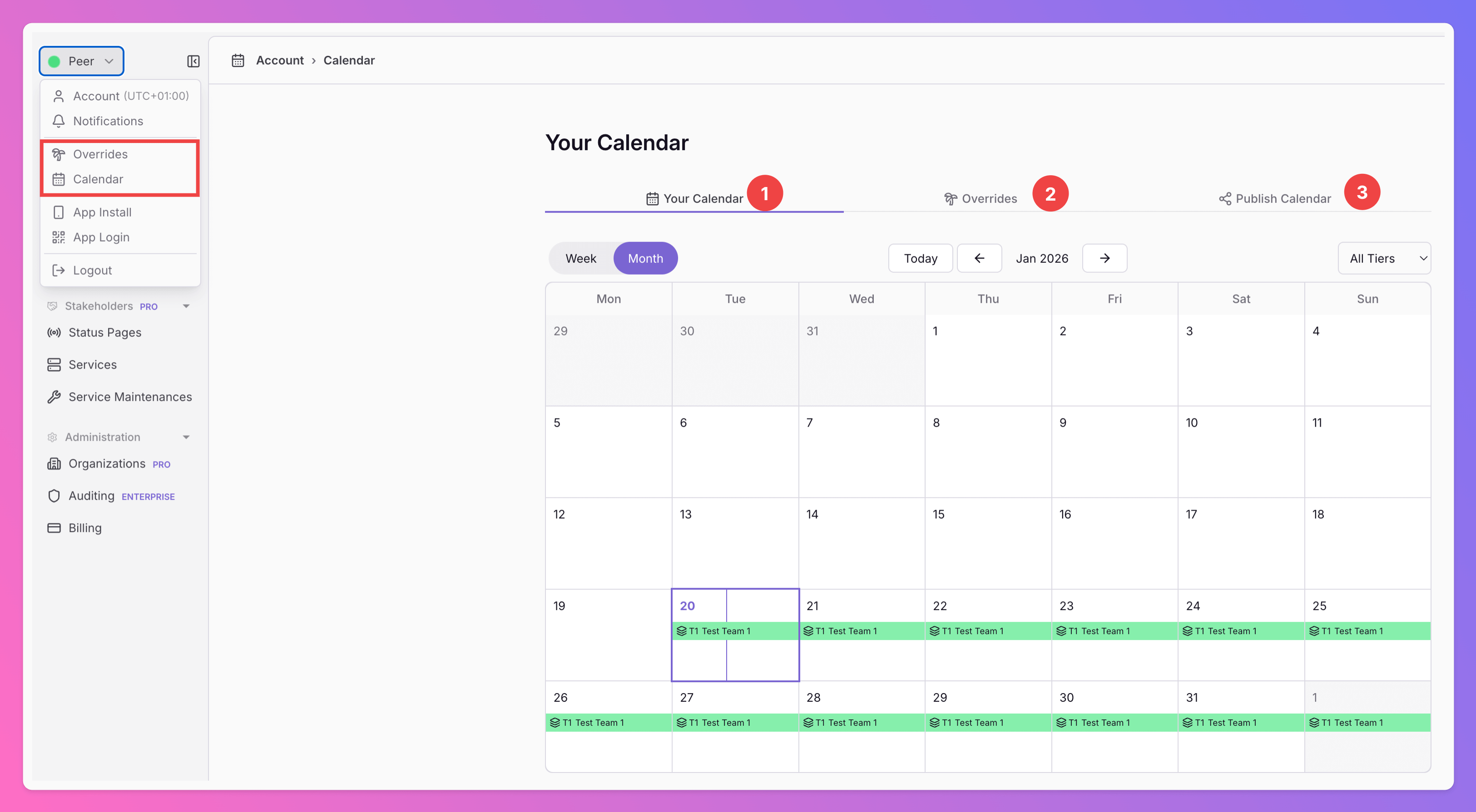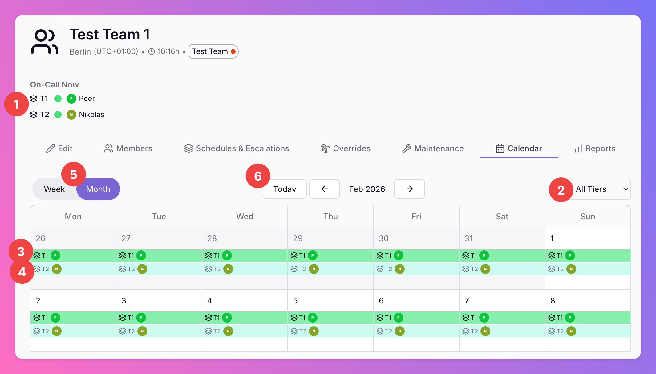 Your Calendarwhere you can conveniently view all your upcoming on-call duties across various teams.- An overview of your personal Overrides.