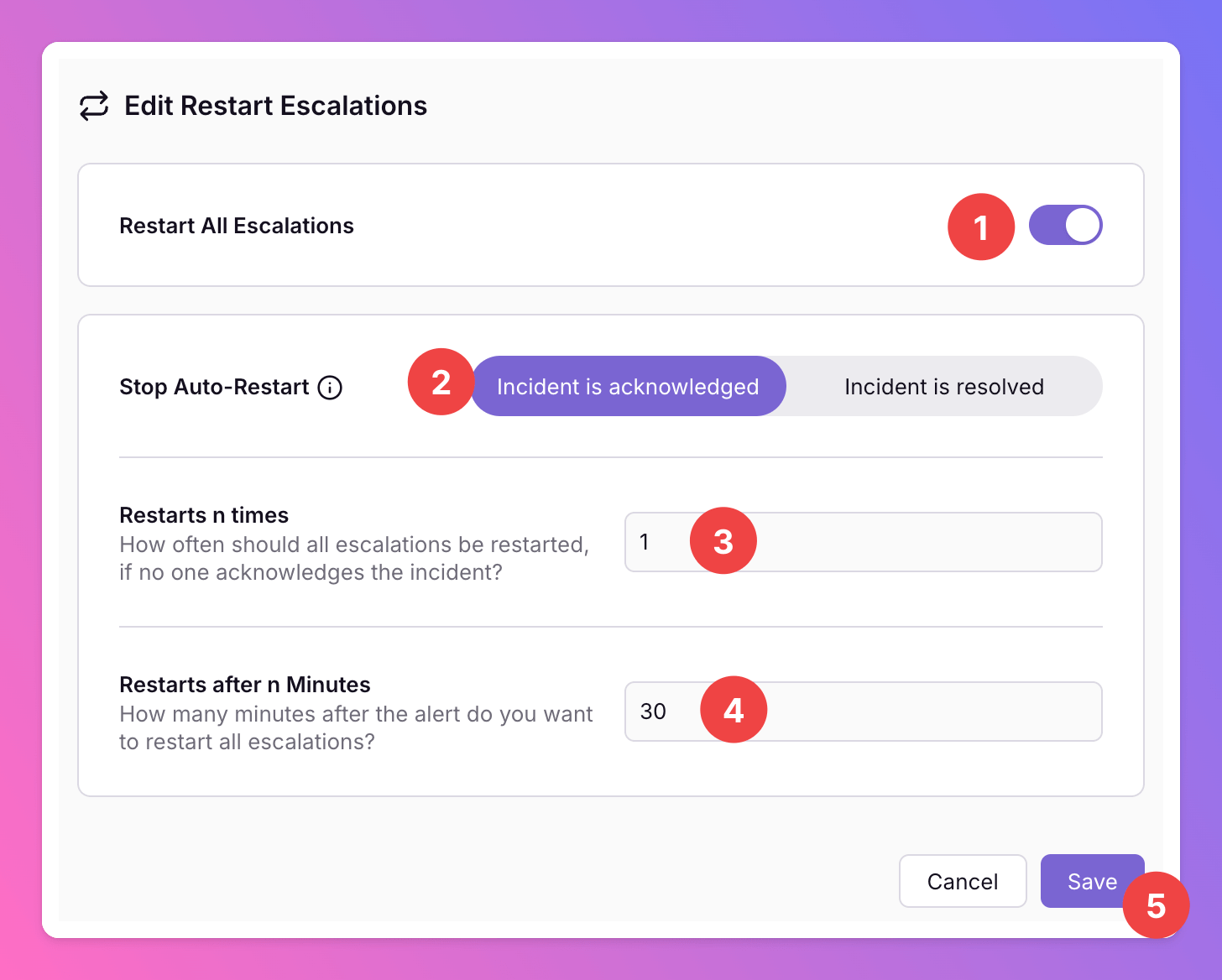 Resolvesthe incident. - You can select how often you’d like to repeat the escalations.