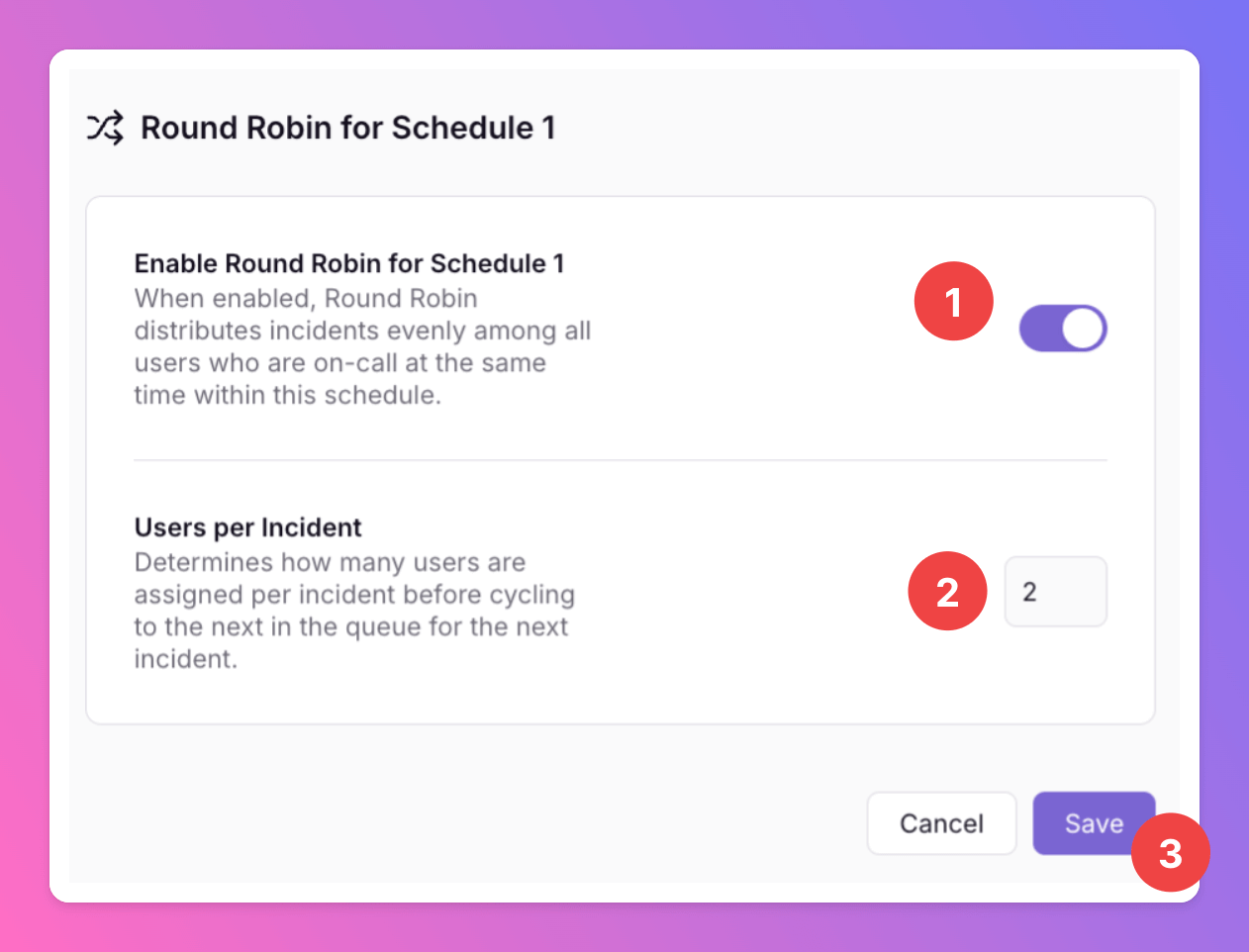 Round Robin ensures fair and structured incident distribution, preventing any single person from being overwhelmed. While our Rotations feature automatically cycles on-call responsibilities over time (e.g., week over week for fair coverage), Round Robin steps in when multiple people are on-call simultaneously - assigning incidents in a rotating order. This guarantees:- ✅ No one gets overloaded with back-to-back incidents.