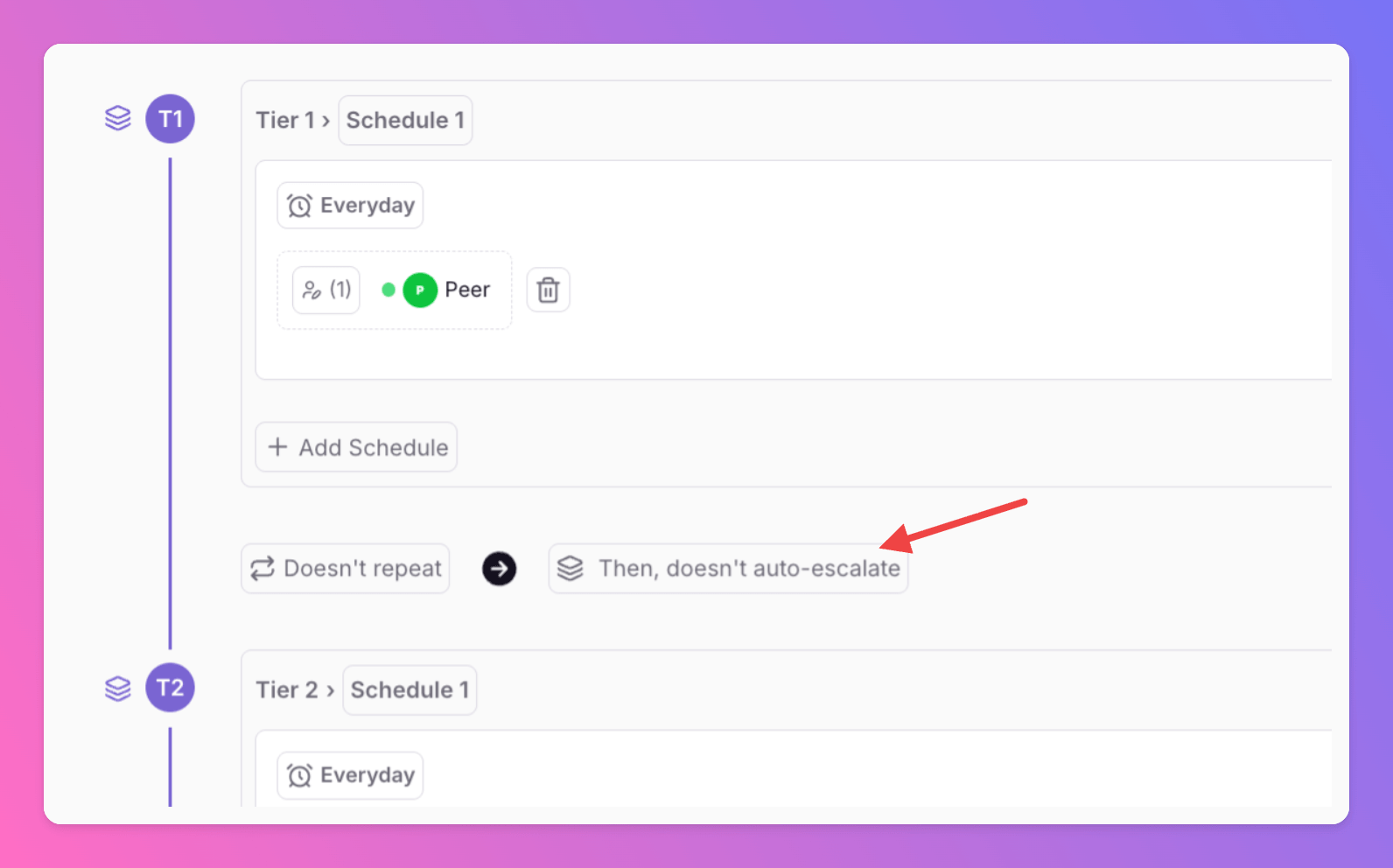 - Auto-escalation: Escalate from Tier 1 to Tier 2 after 10 minutes if nobody acknowledges.
