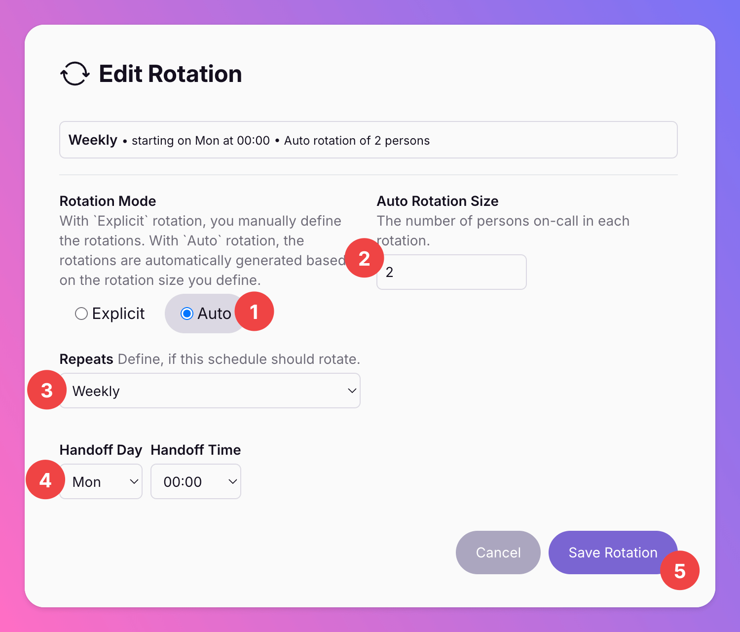 Auto Rotation Group Size. This is the number of persons on-call in each rotation group. - We already selected our rotation period -