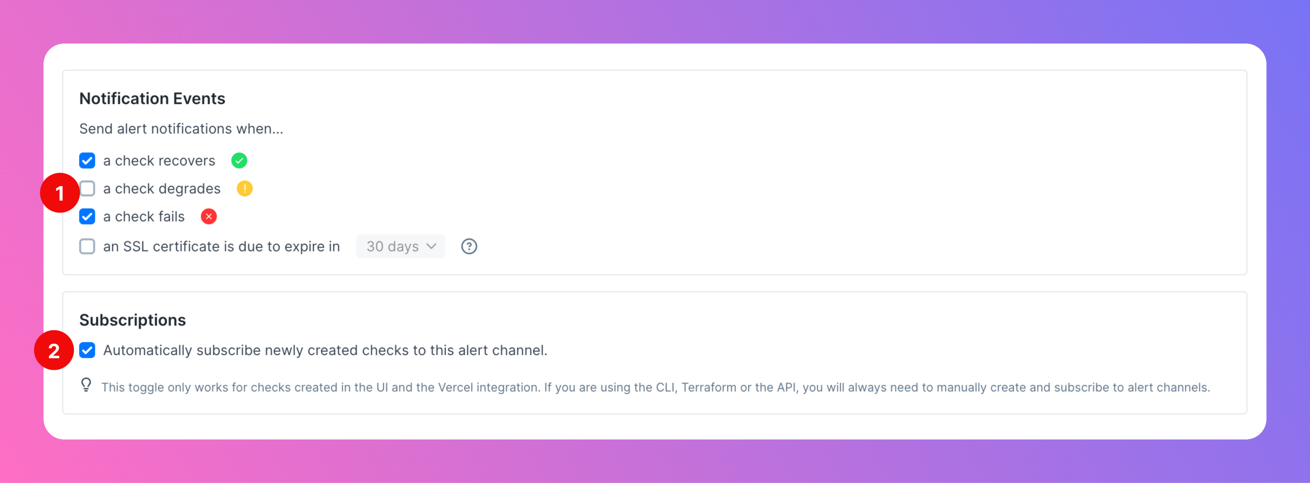 if you want to make sure that alerts for newly created checks will also be sent to All Quiet.