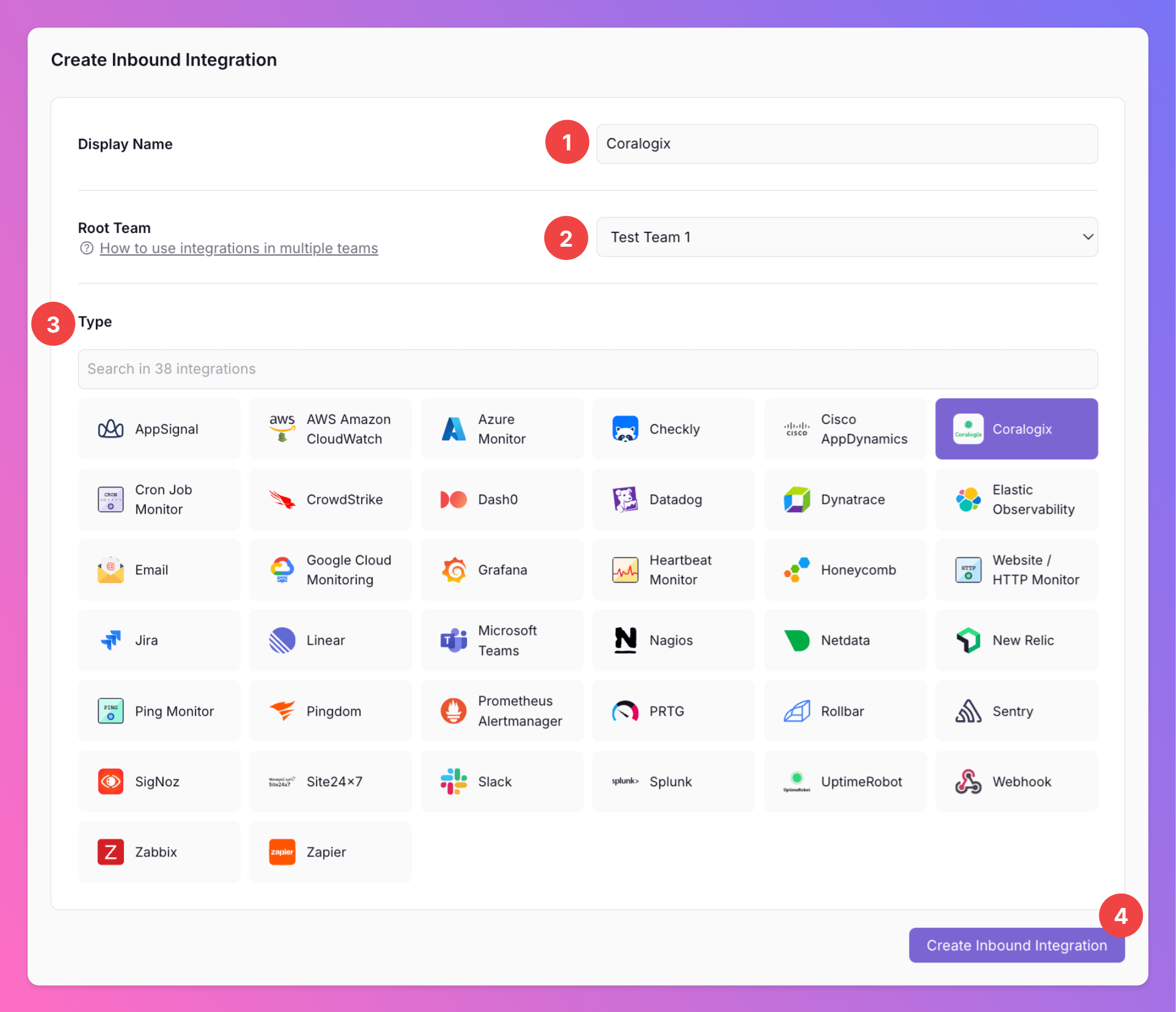 Display Namefor your integration, e.g. “Coralogix”. - Select a