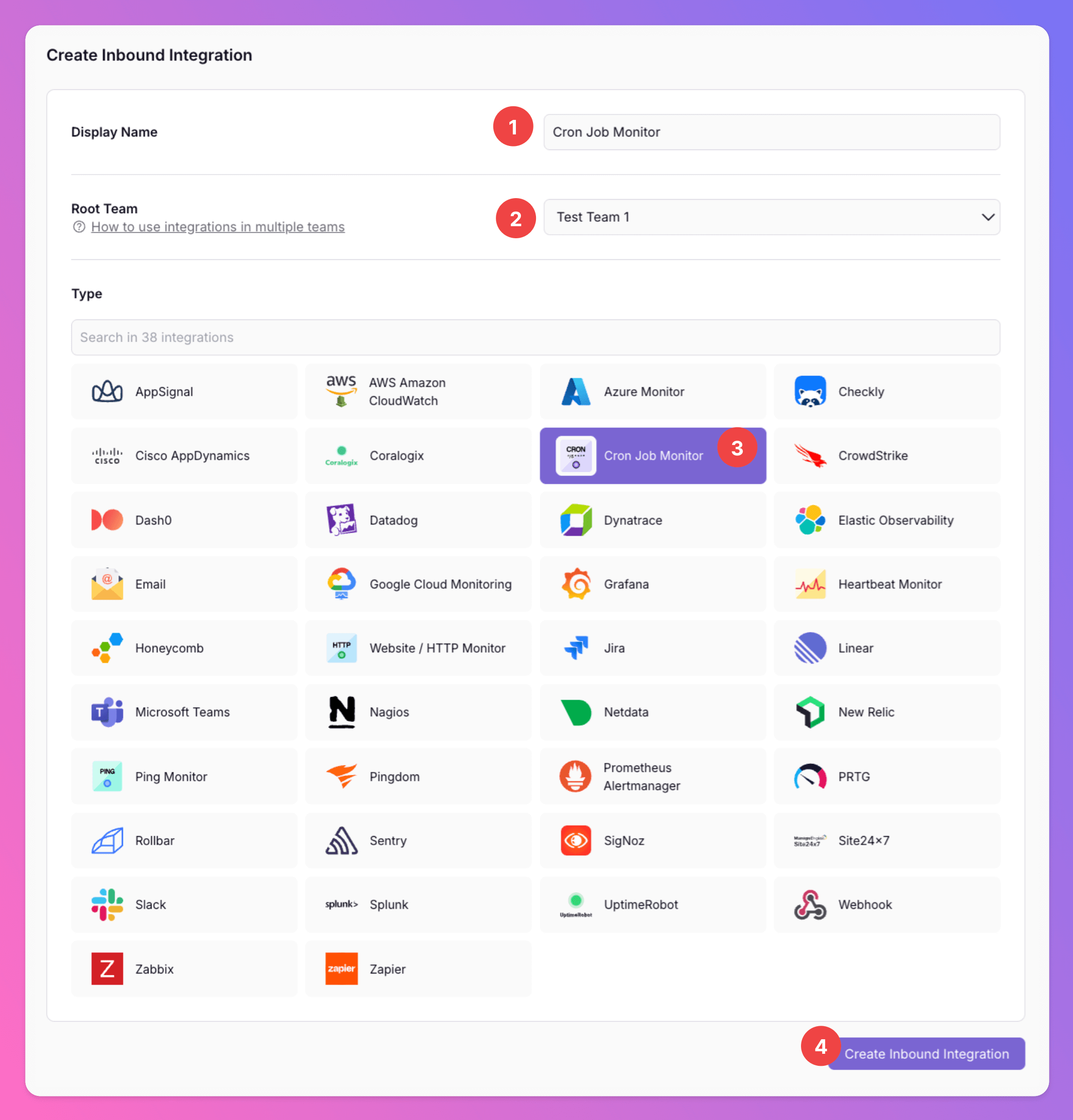 Cron Job Monitoras the integration’s type. -