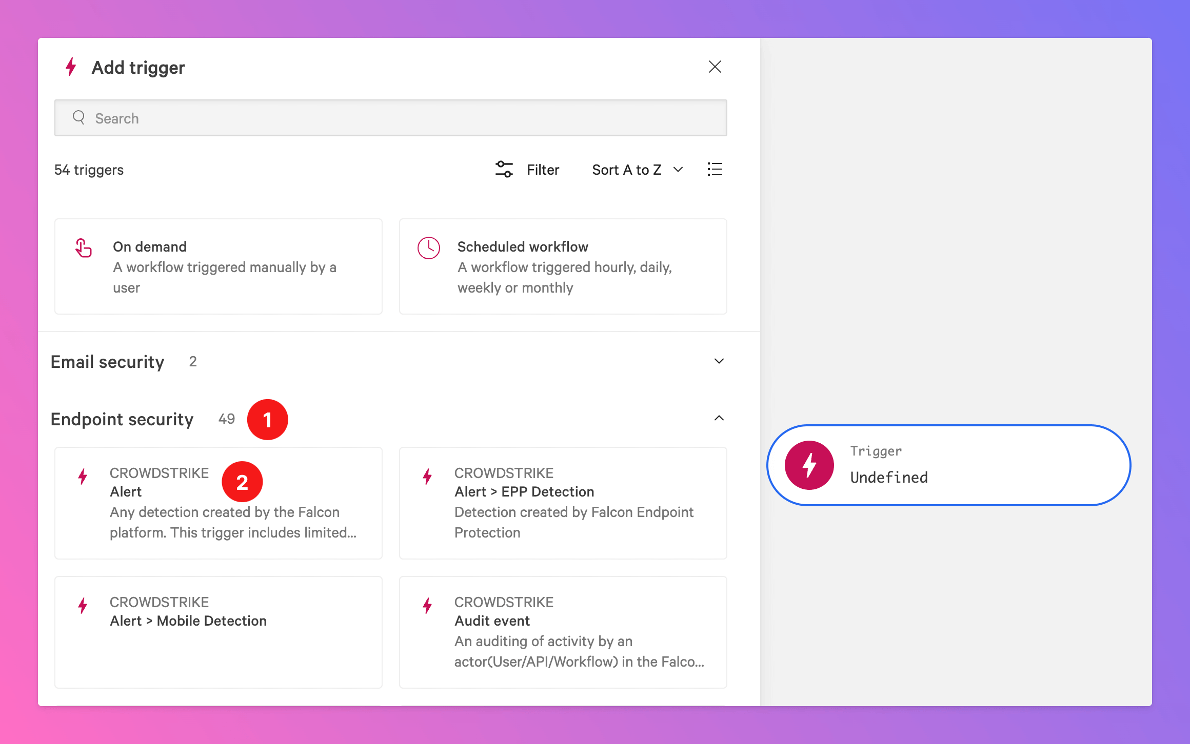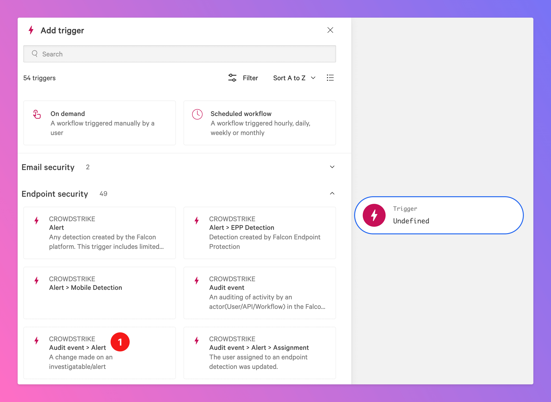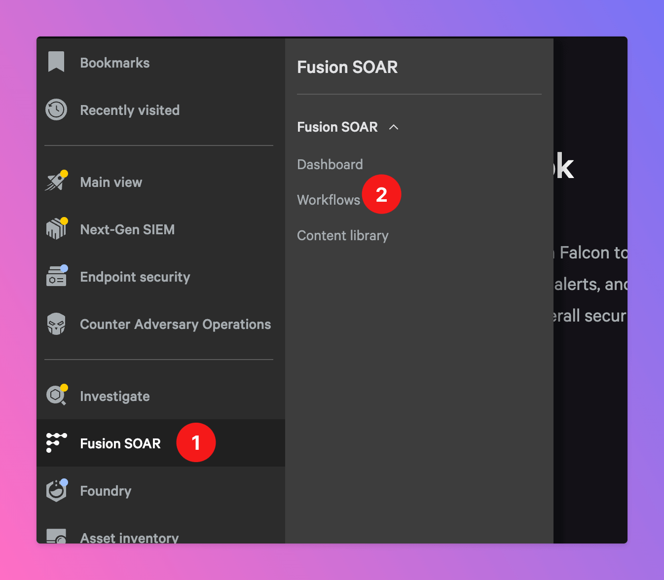 Now, we need to set up a workflow to create All Quiet incidents from CrowdStrike alerts.- In the sidebar navigation, select `Fusion SOAR“