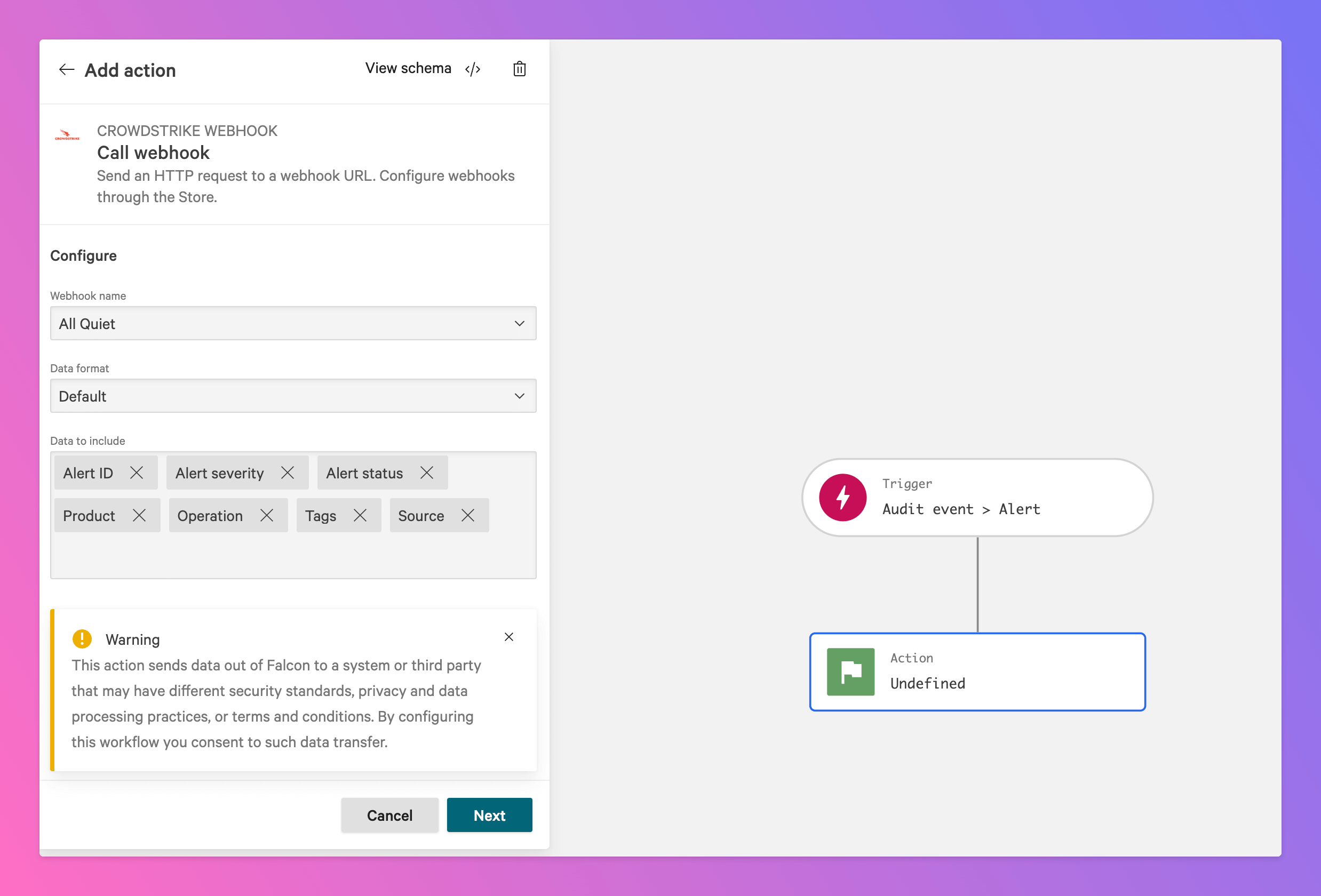 You’ve successfully created the Webhook. Next, we need to set up a workflow to create All Quiet incidents from CrowdStrike, using the Webhook.