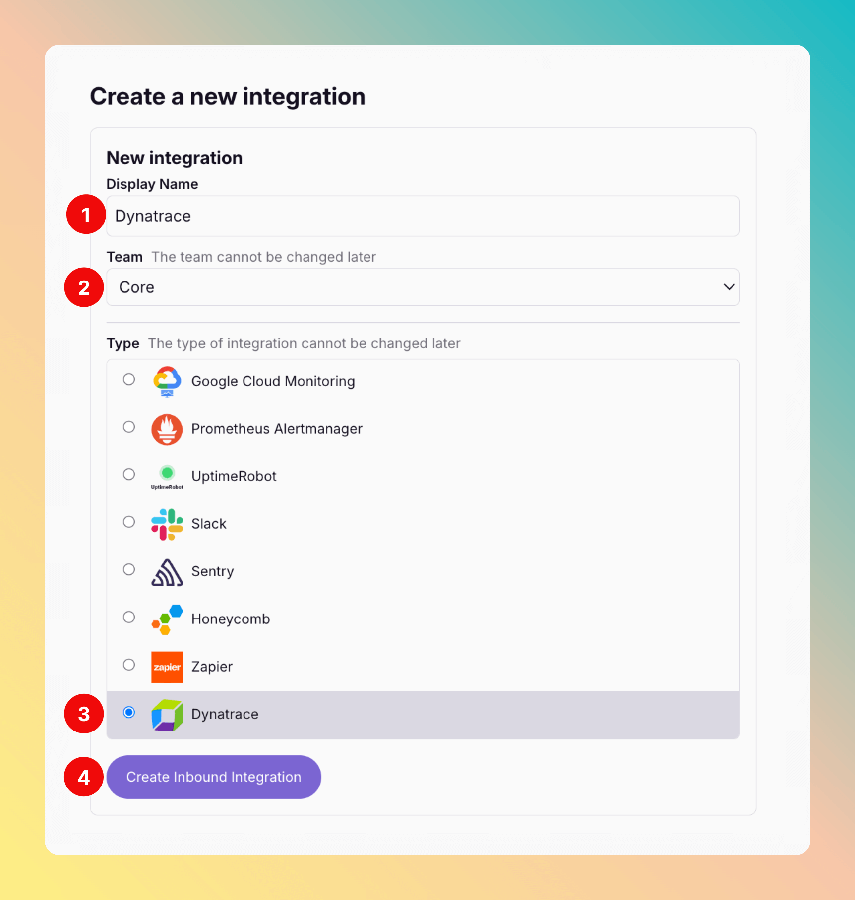 for your Dynactrace integration, e.g. “Dynatrace”. - Pick the