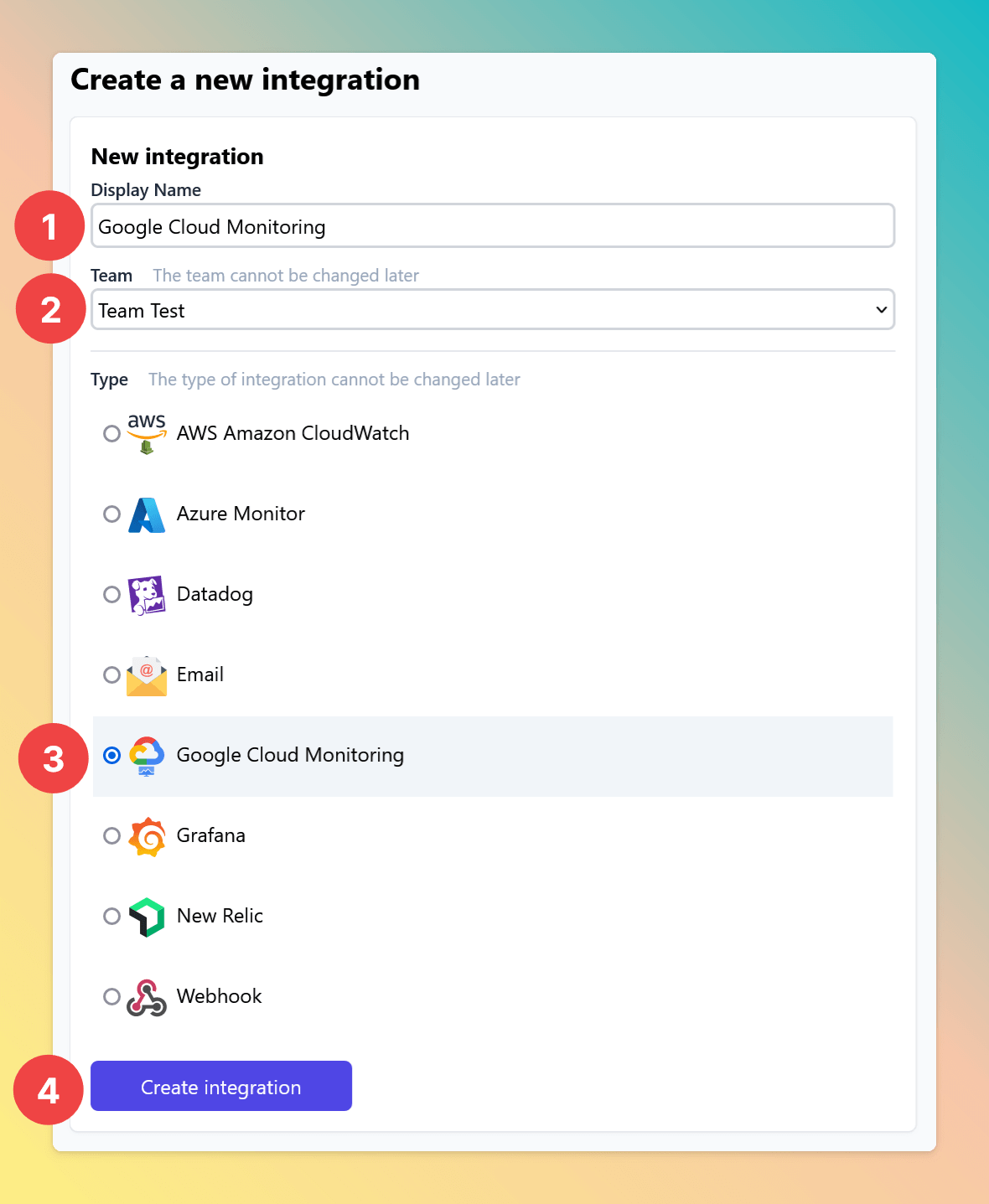 - Enter a display name for your integration, e.g. “Google Cloud Monitoring”.
