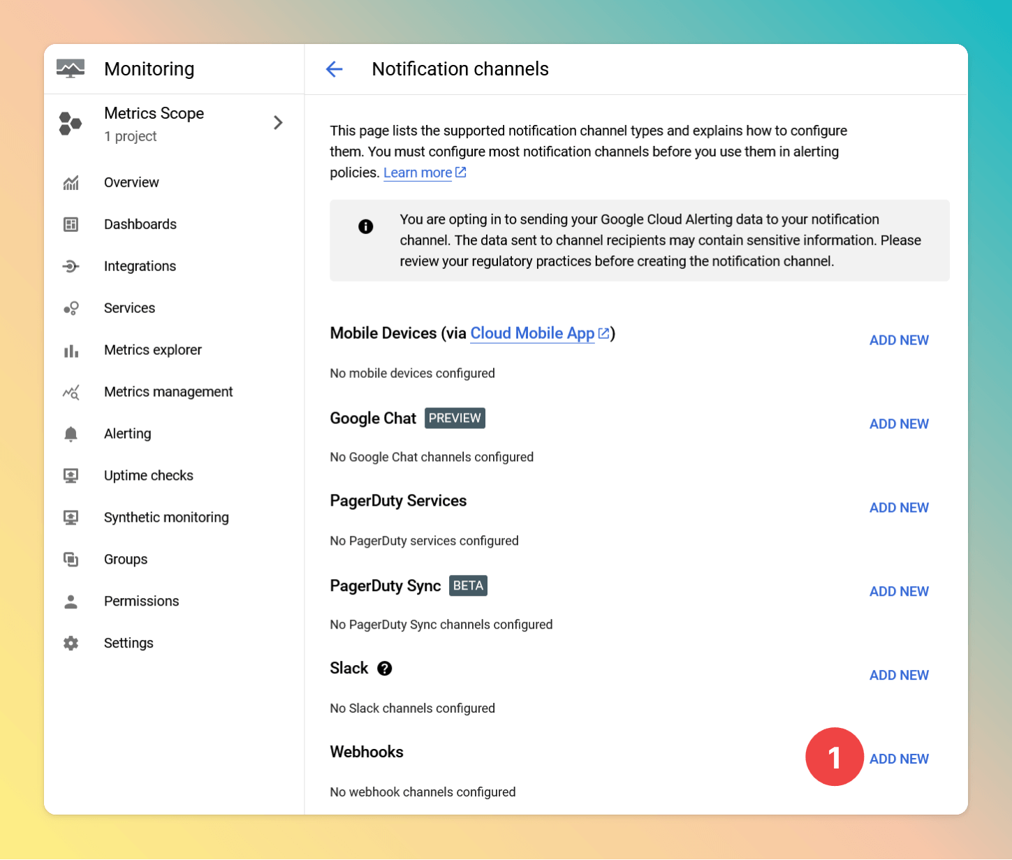 After successfully creating your Google Cloud Monitoring integration, make sure to copy the webhook URL. You’ll need it later when setting up your notification channel in Google Cloud Monitoring.