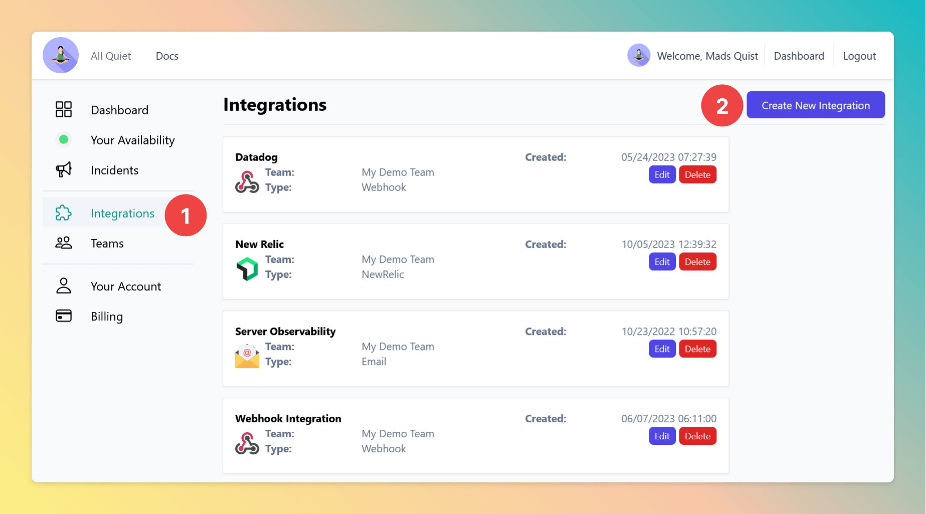 Login into your All Quiet account.Create Google Cloud Monitoring Integration