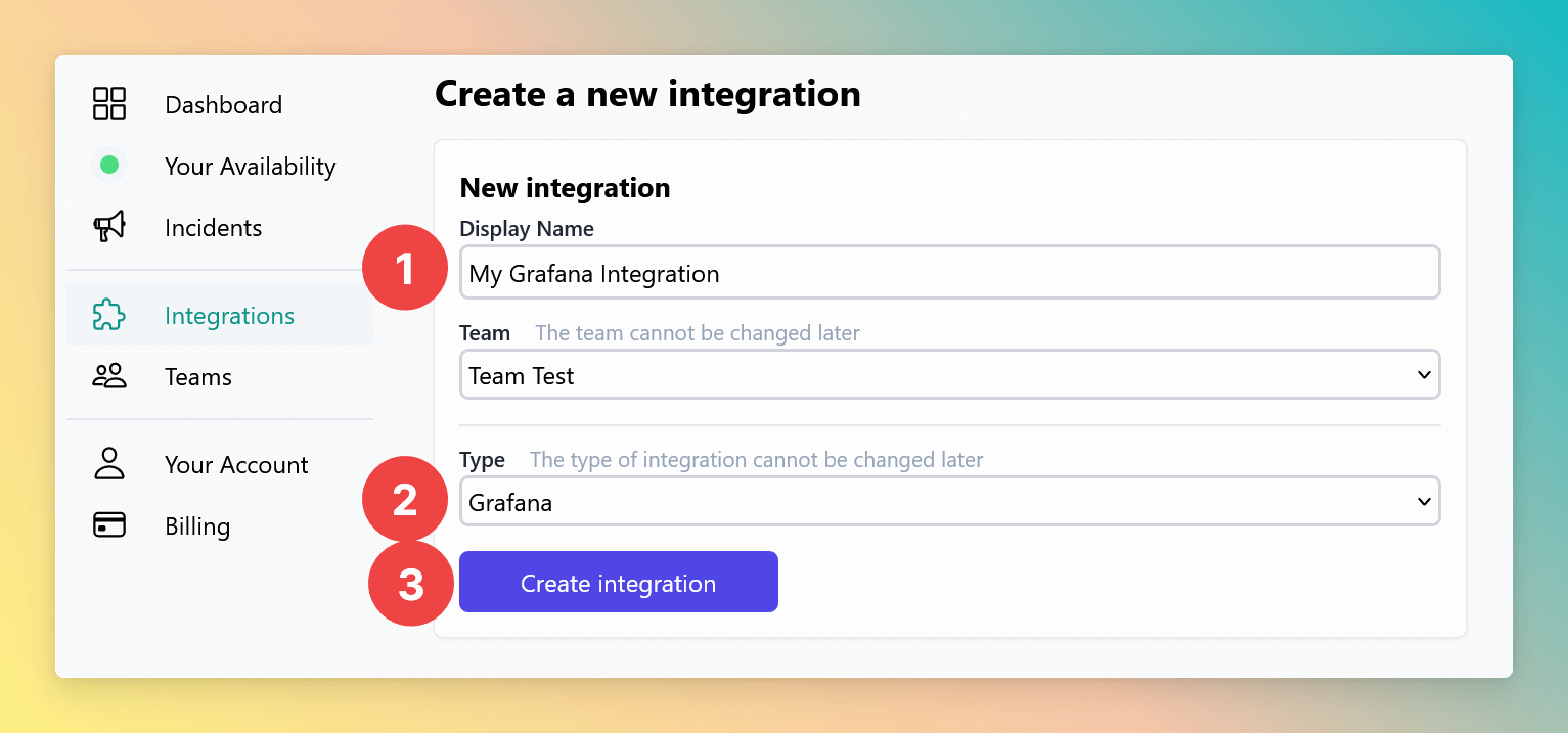 Select Grafana for the integration’s type