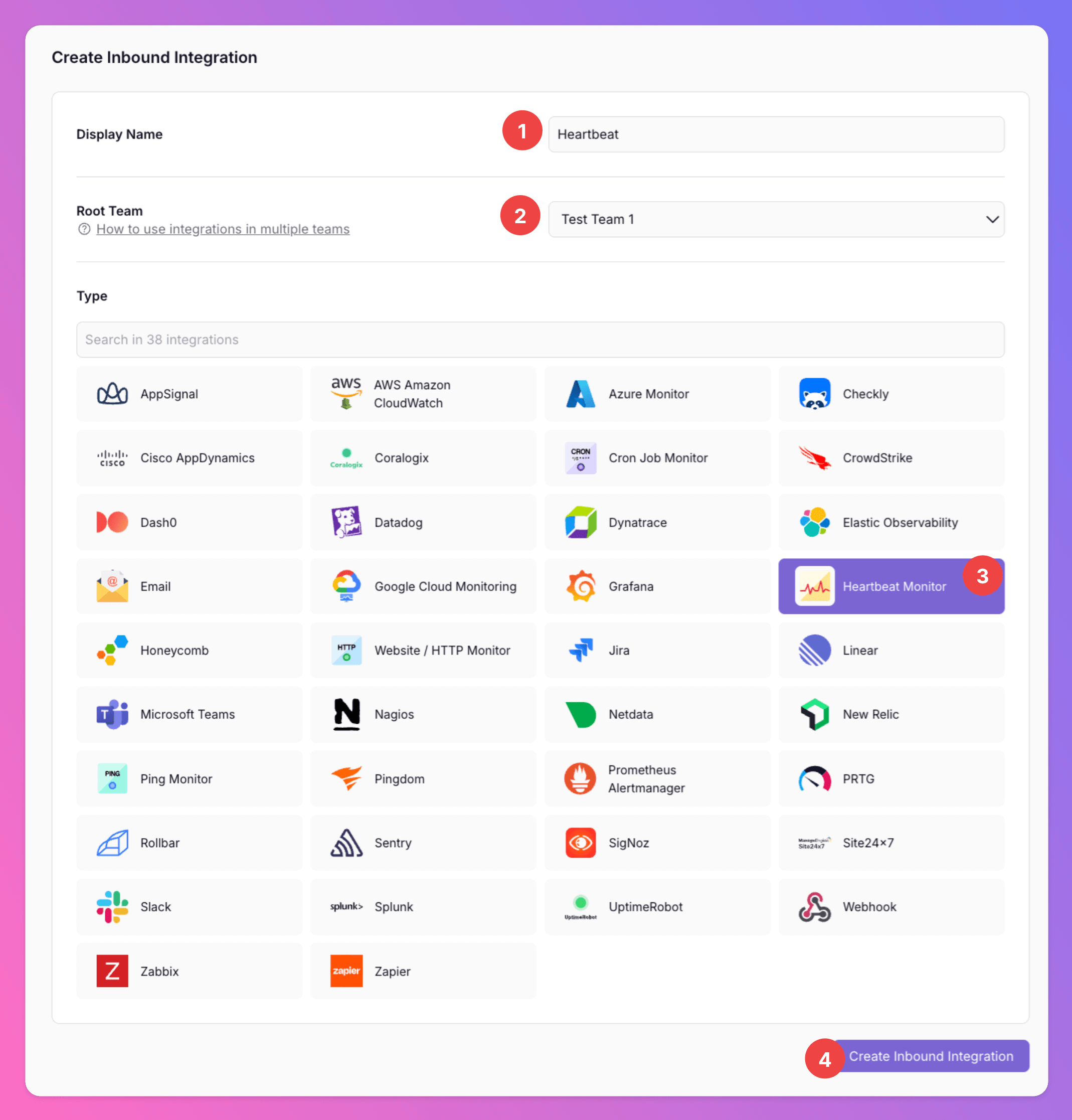 Display Namefor your integration, e.g. “Heartbeat”. - Select a