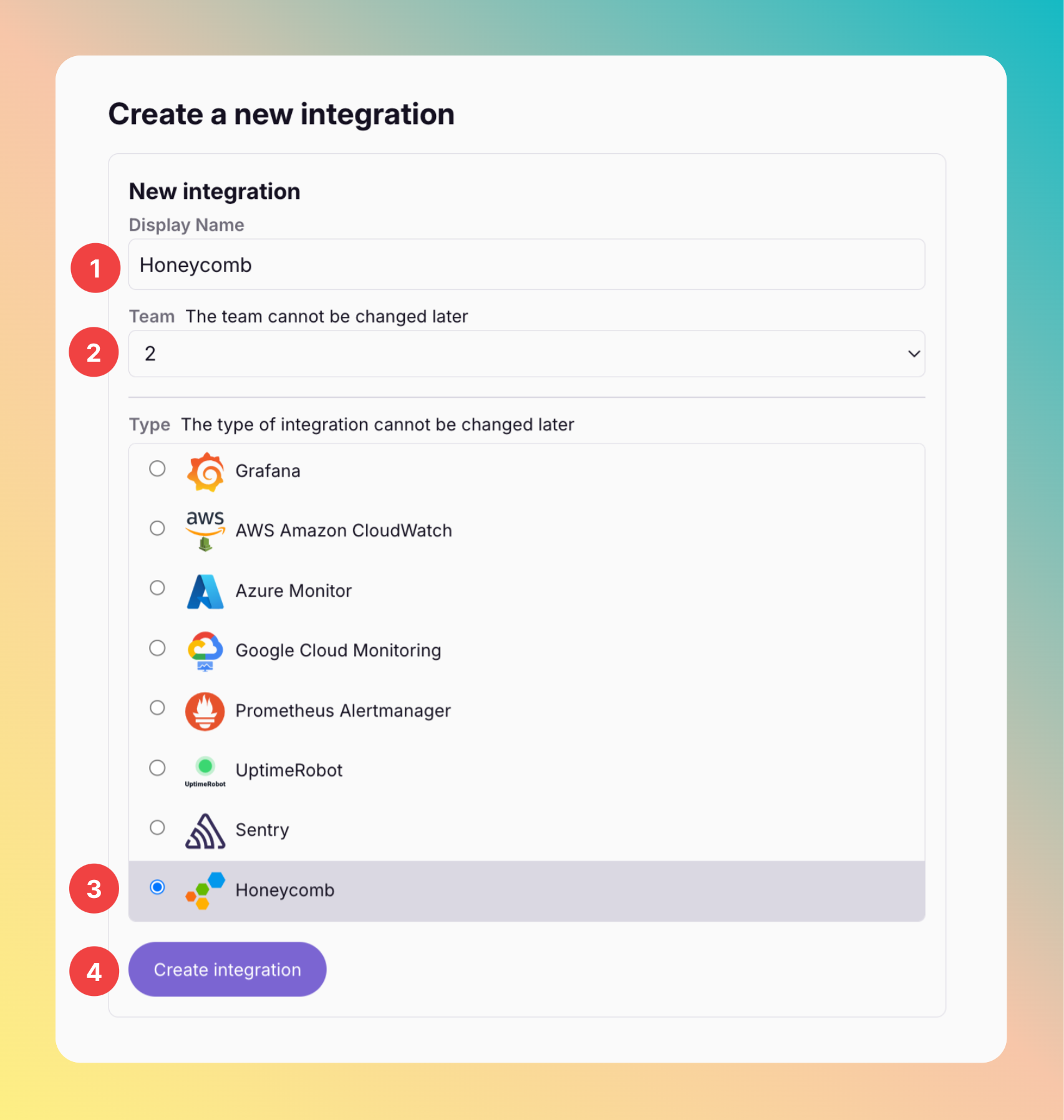 2. Create an integration on Honeycomb