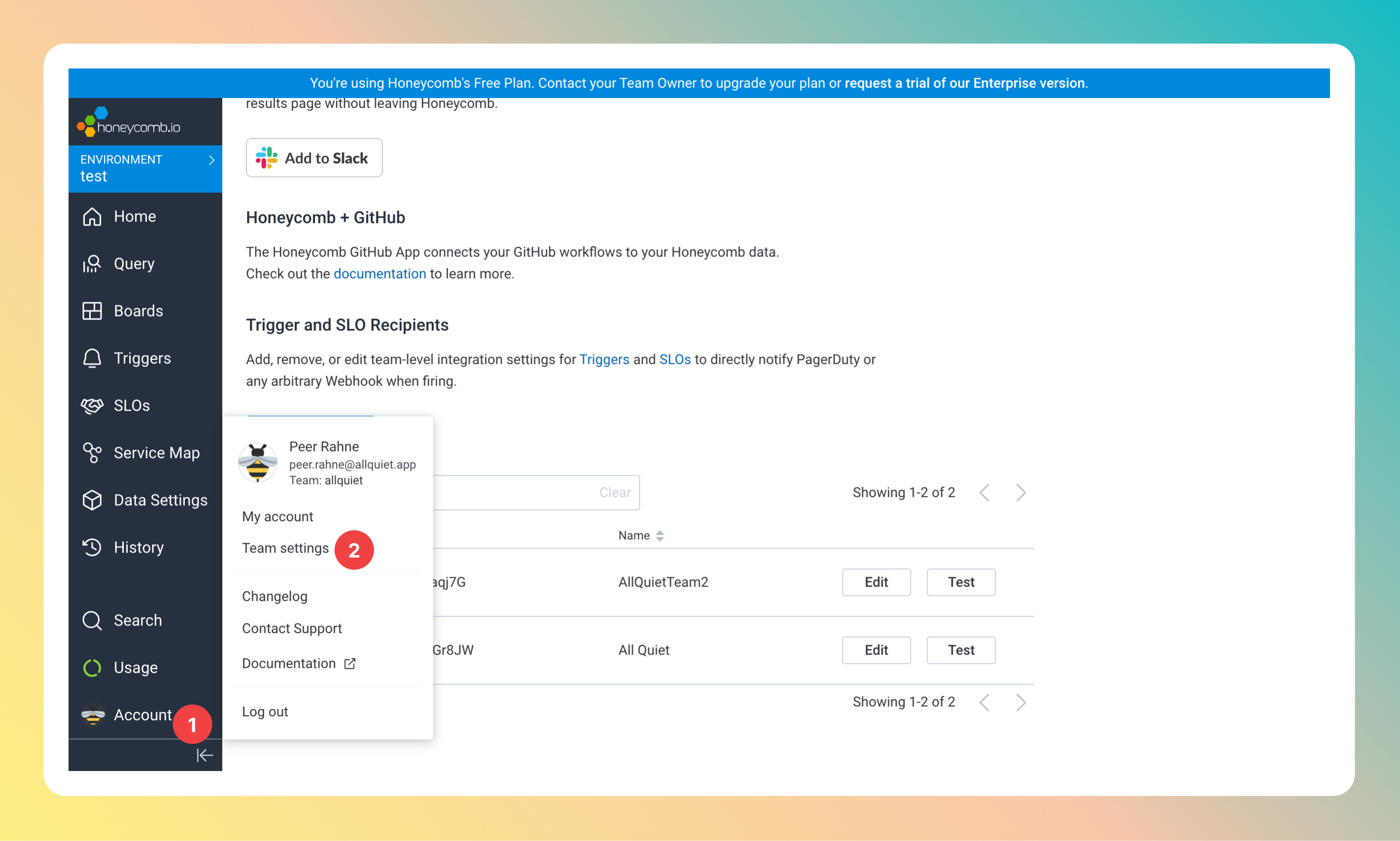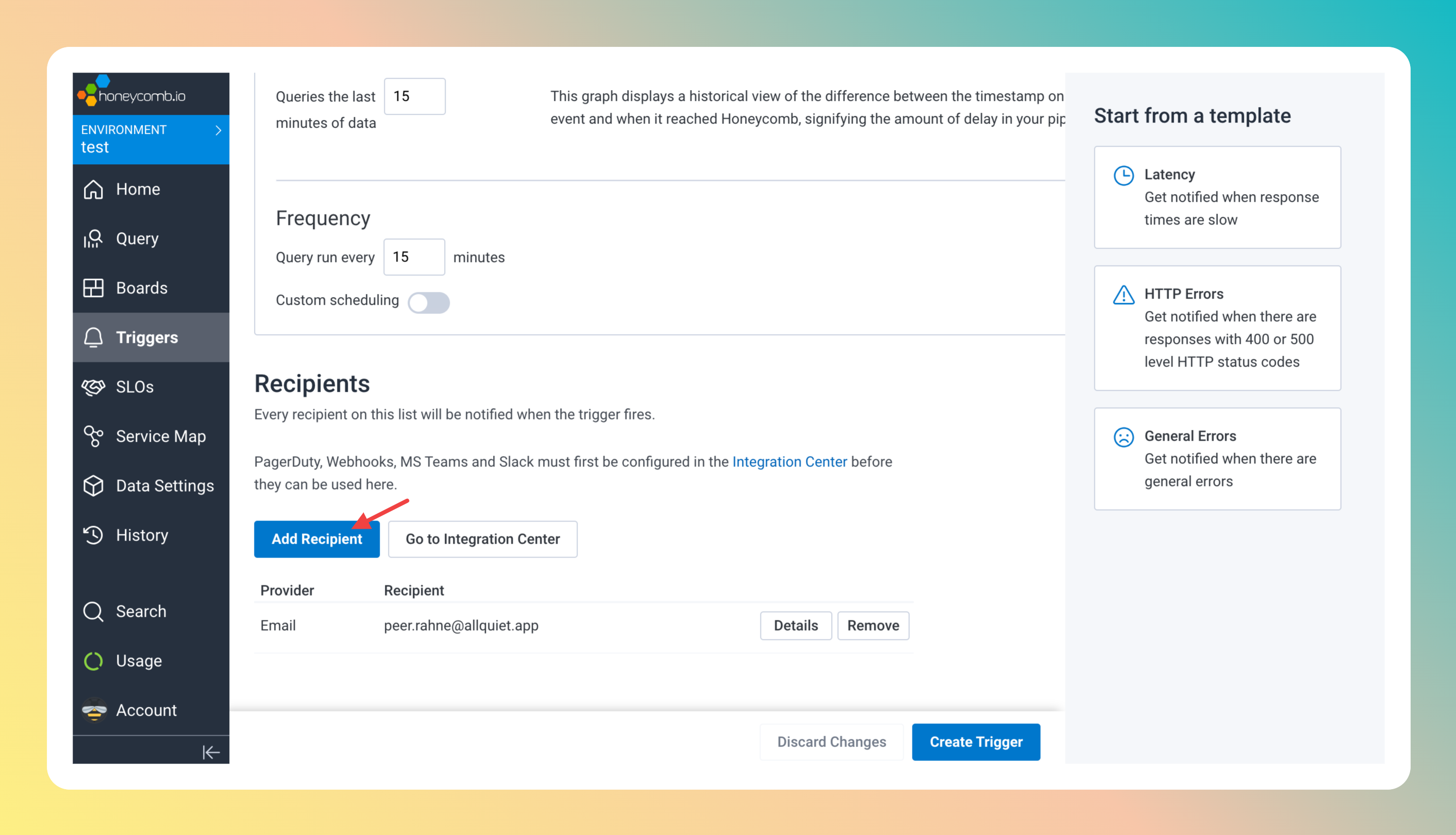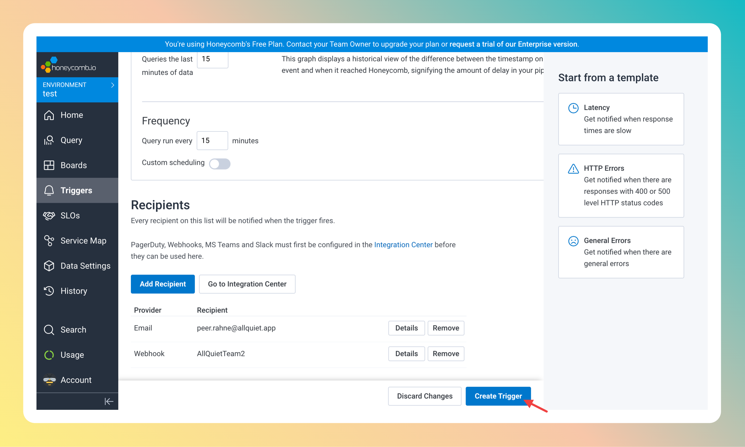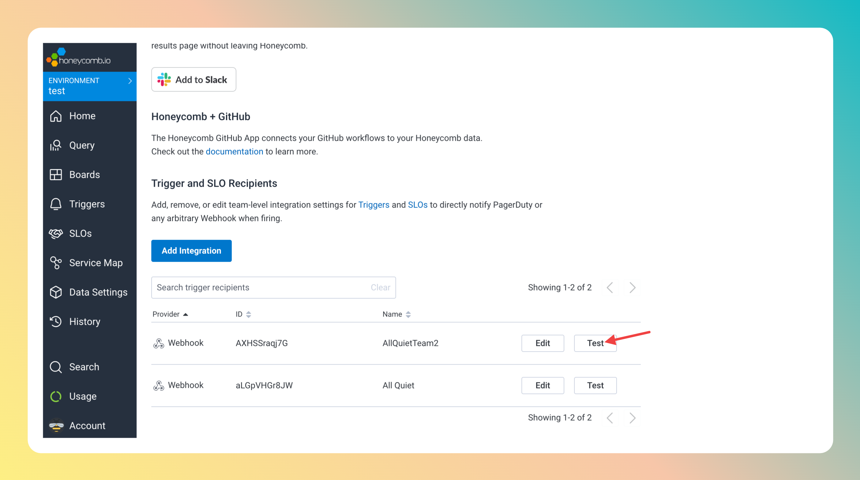 Honeycomb is now successfully integrated with All Quiet. You can add the All Quiet Integration to as many triggers on Honeycomb as you like!