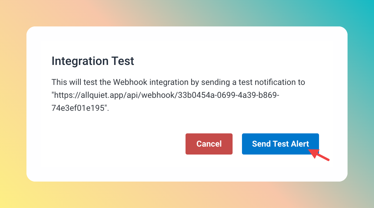 - Paste in the All Quiet webhook URL you’ve obtained in step Get The All Quiet Webhook URL and shared secret.
