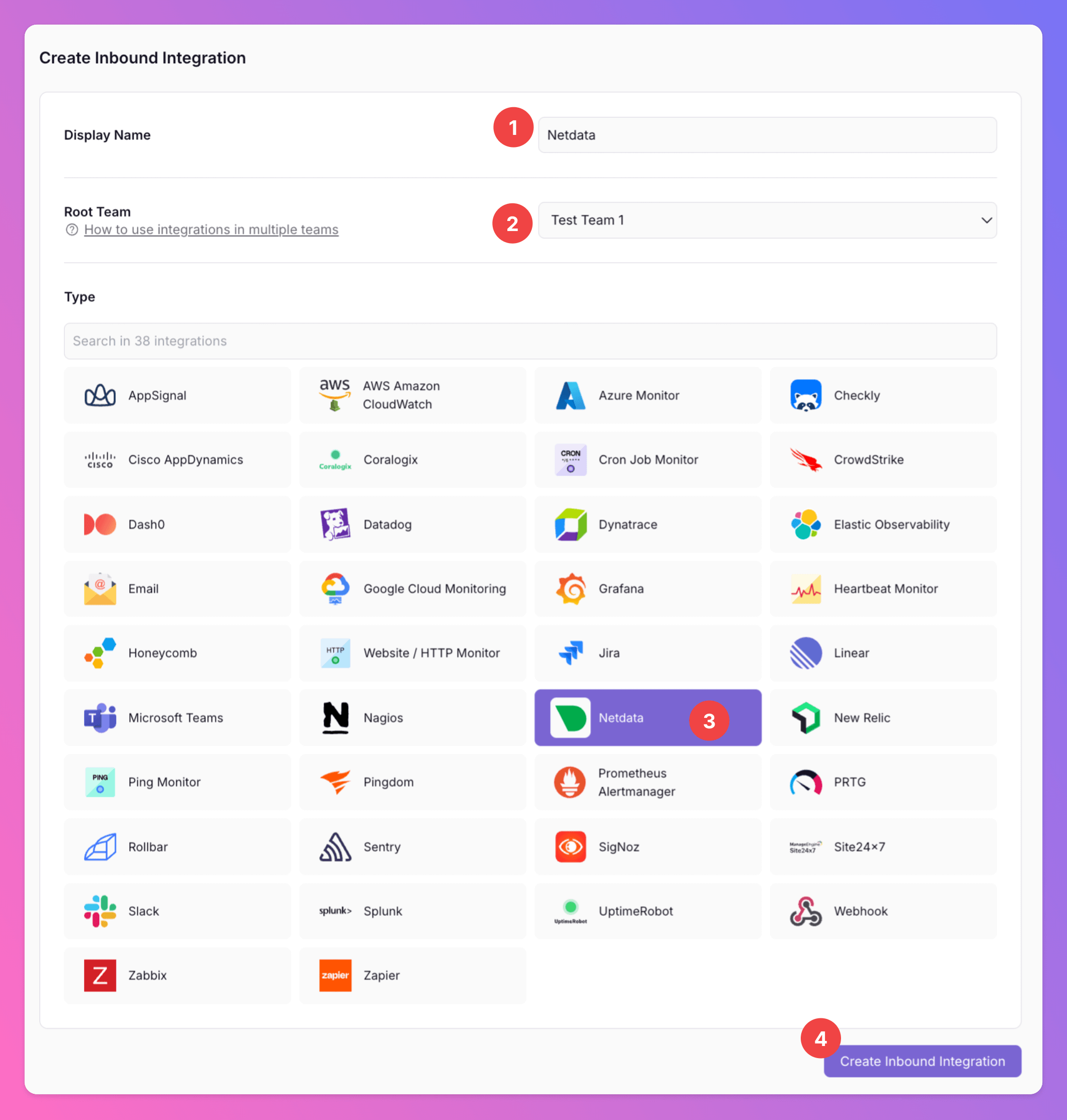 Display Namefor your integration, e.g. “Netdata”. - Select a