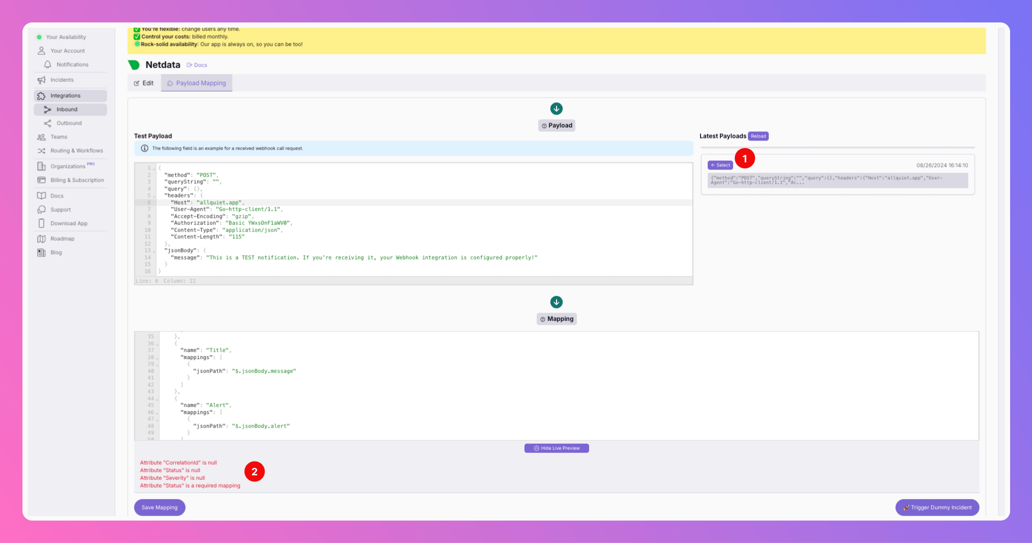 Looking to customize the fields of your incidents by adjusting the pre-built payload mapping? Simply head over to the “Payload” tab within your integration and make the necessary edits to the mapping. For detailed guidance, you may check out our payload mapping documentation.Using our Terraform provider? Download the default mapping of the