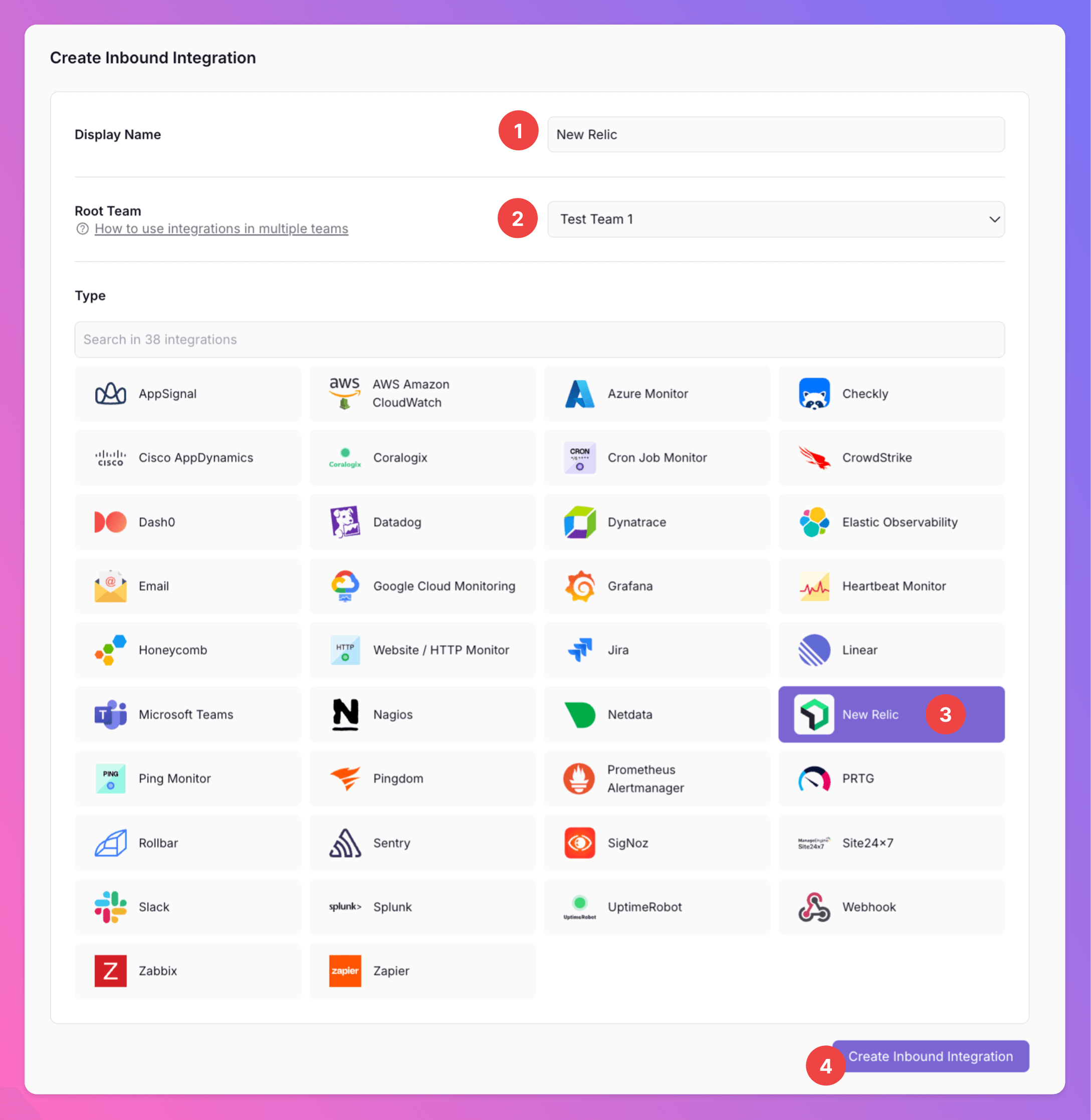 Display Namefor your integration, e.g. “New Relic”. - Select a