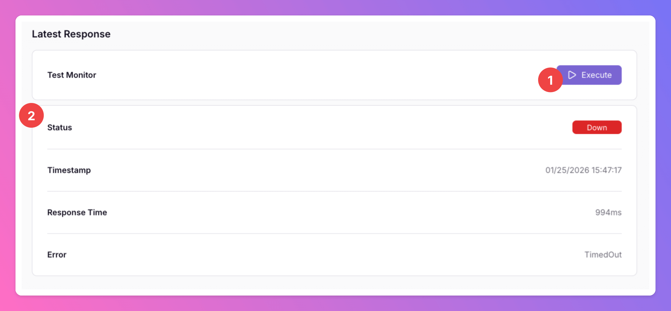 We recommend testing your monitor after setting it up to see if it works as expected. After saving the monitor,- Click “Execute” in the
