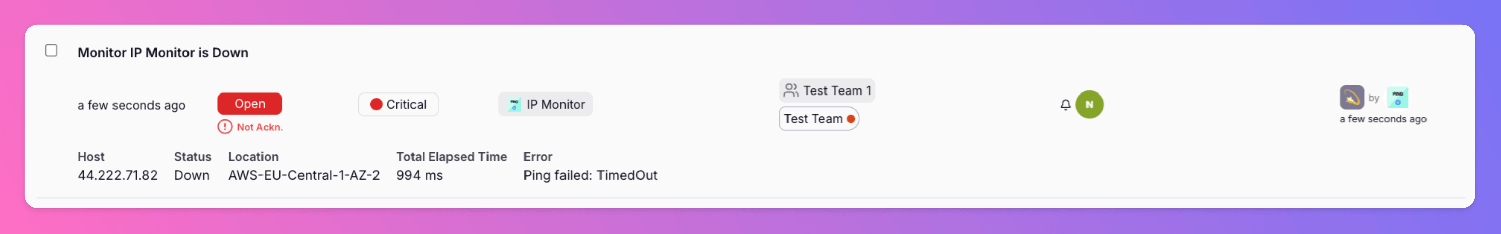 This behavior differs from other inbound integrations, which create a new incident whenever an alert is received if there is no open incident yet. Ping monitoring is designed to reduce noise by only acting when a real status change occurs.