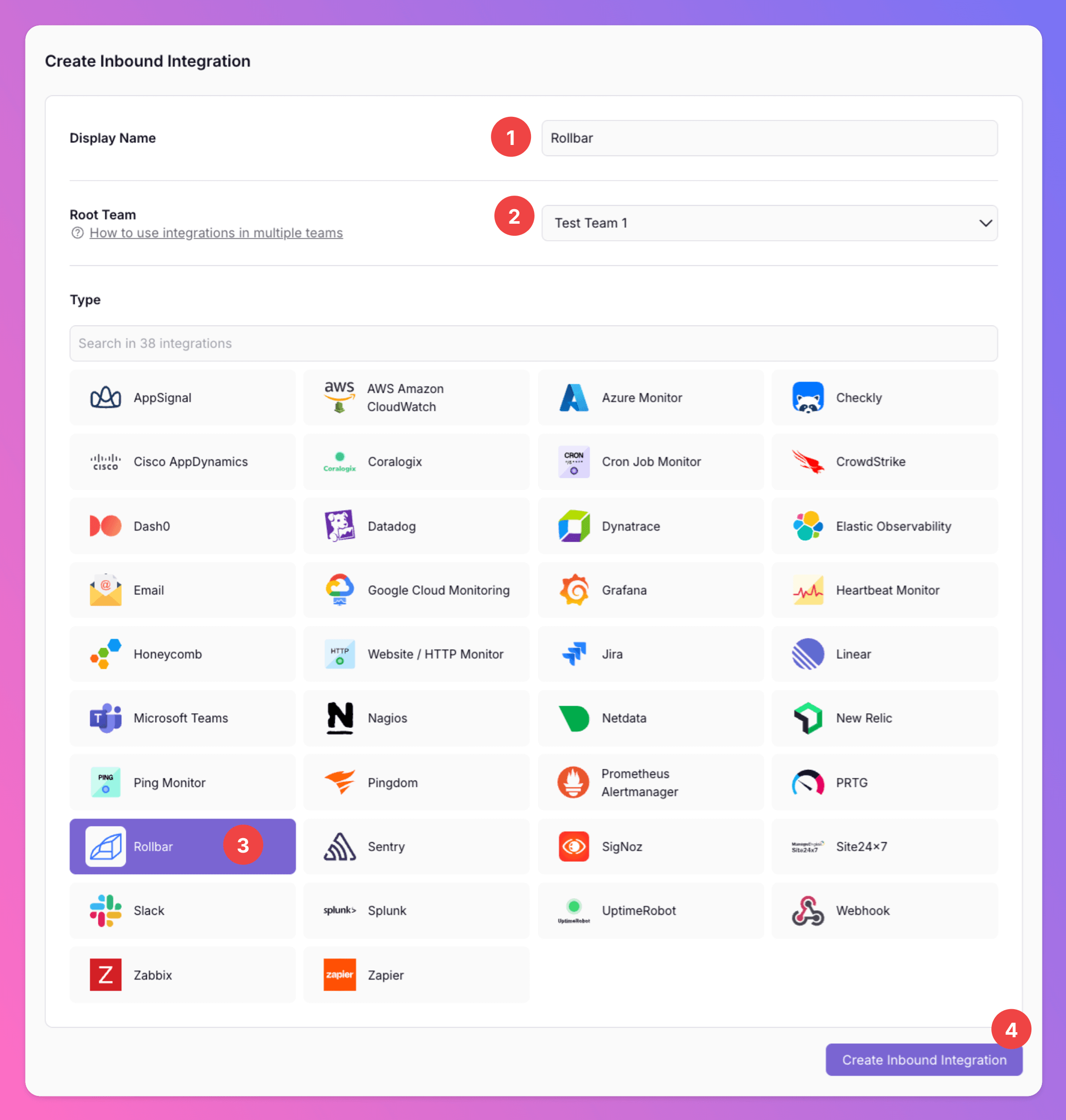 Display Namefor your integration, e.g. “Rollbar”. - Select a