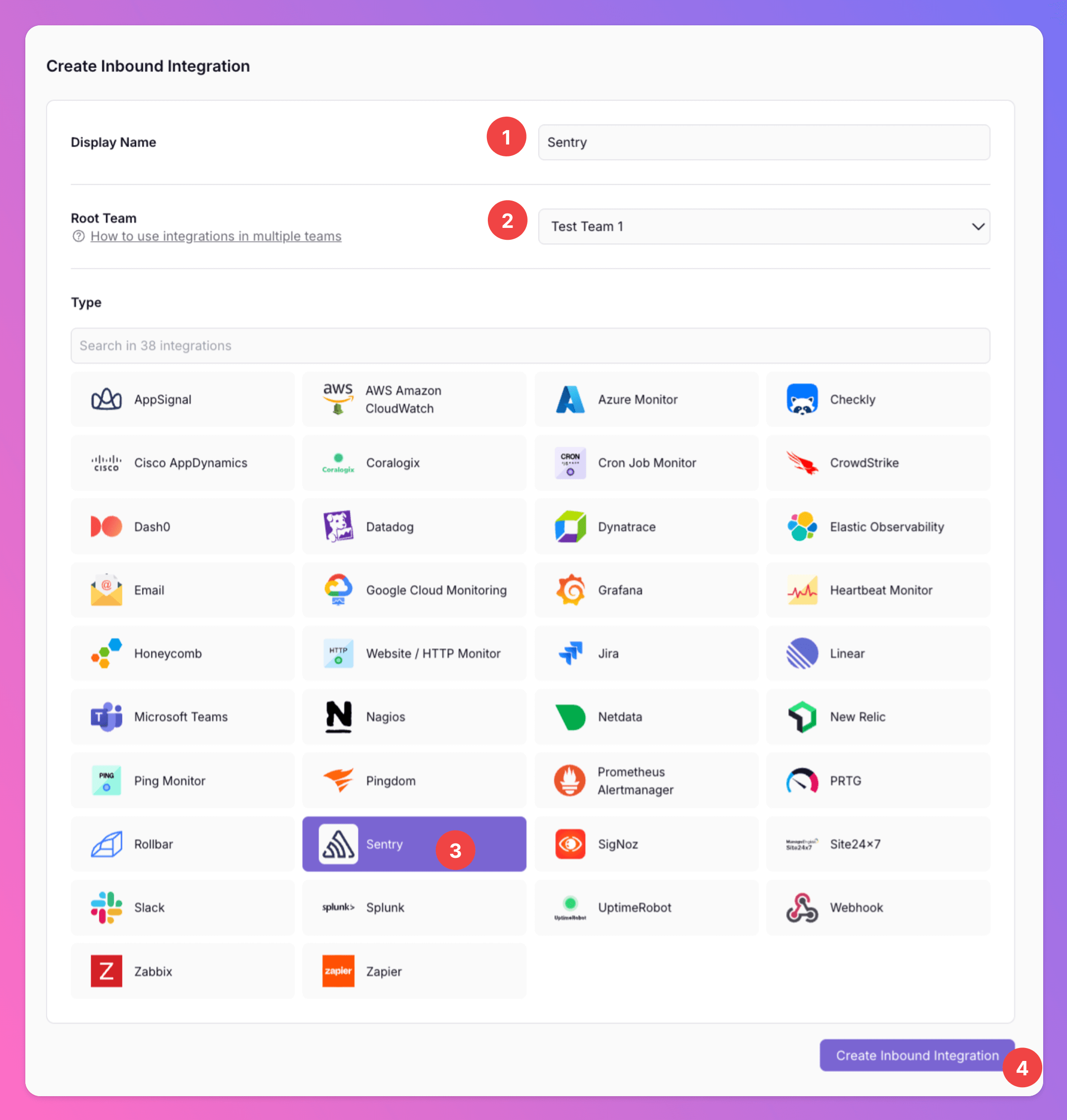 Display Namefor your integration, e.g. “Sentry”. - Select a