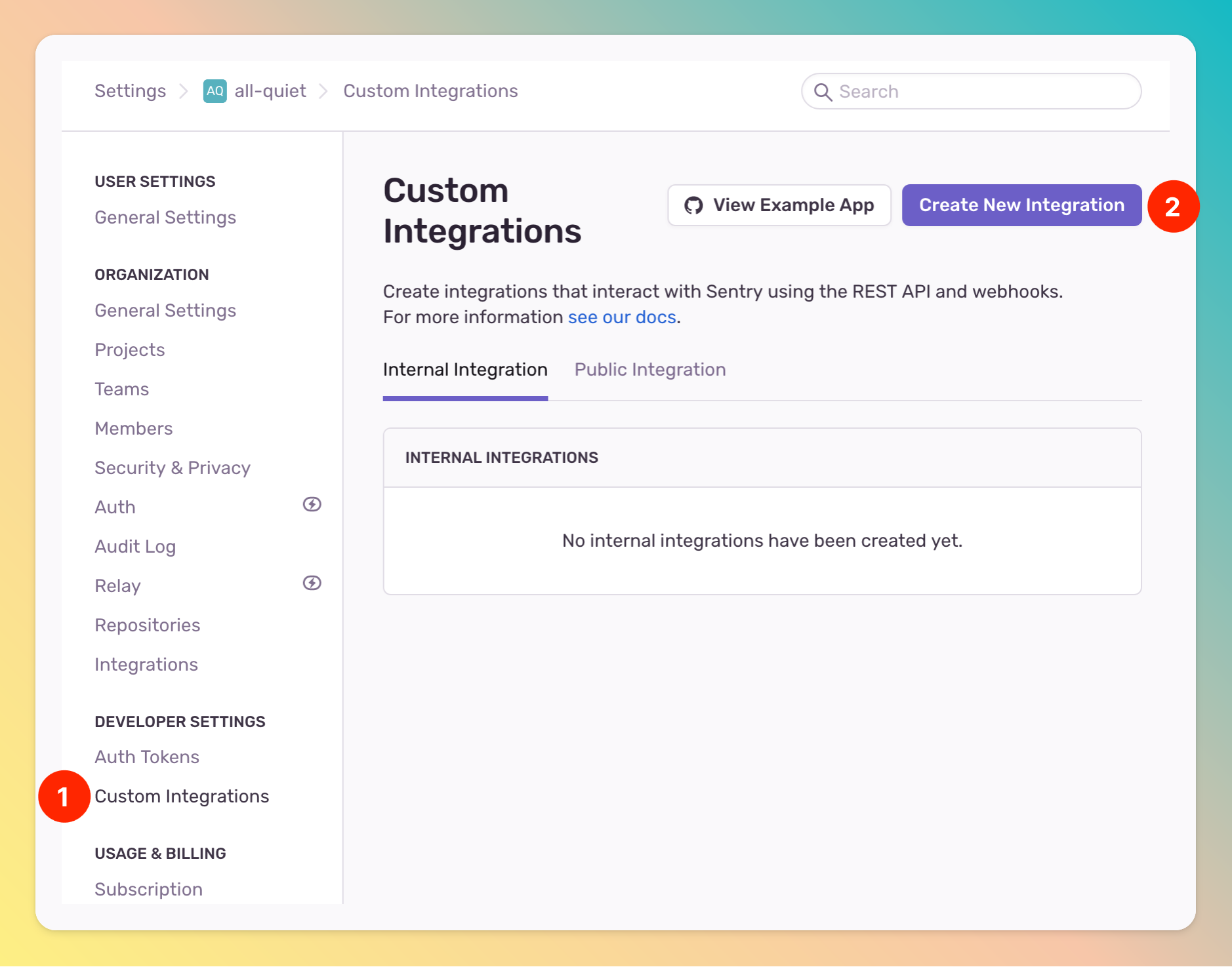 1. Create Sentry Integration on All Quiet