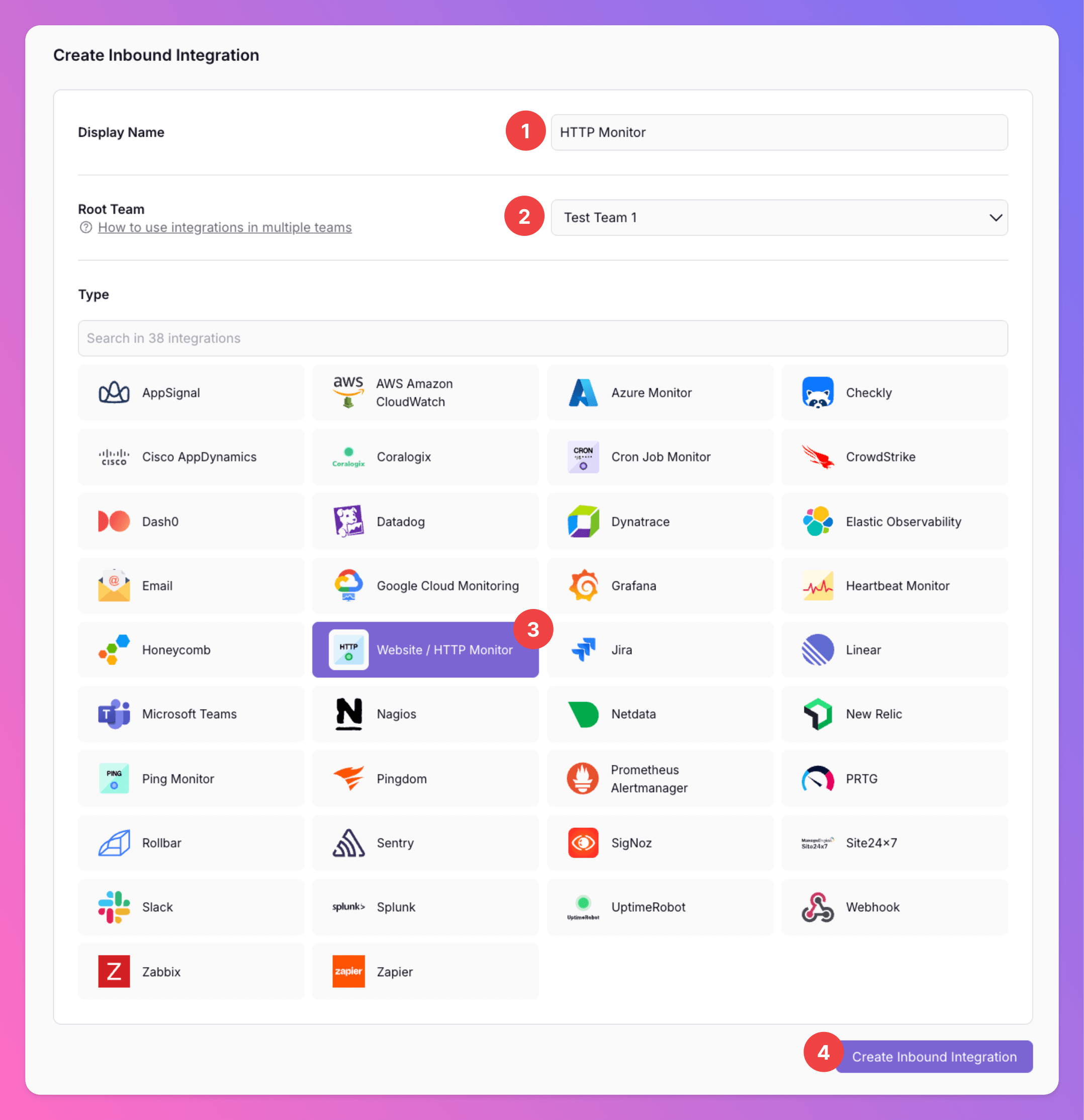 Display Namefor your integration, e.g. “HTTP Monitor”. - Select a