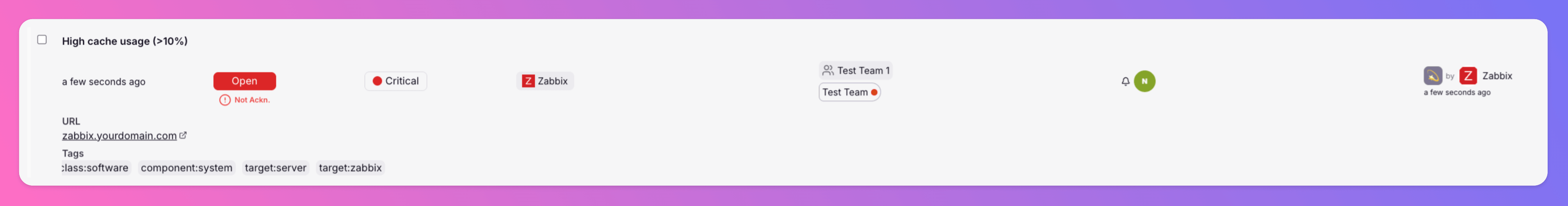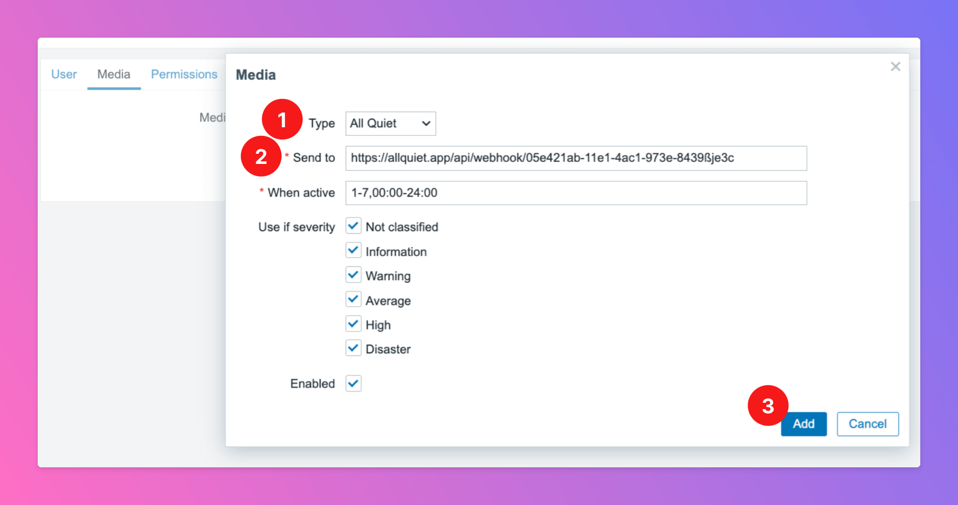 You’re ready to go. If you set up your integration this way, Zabbix will send alerts to All Quiet.