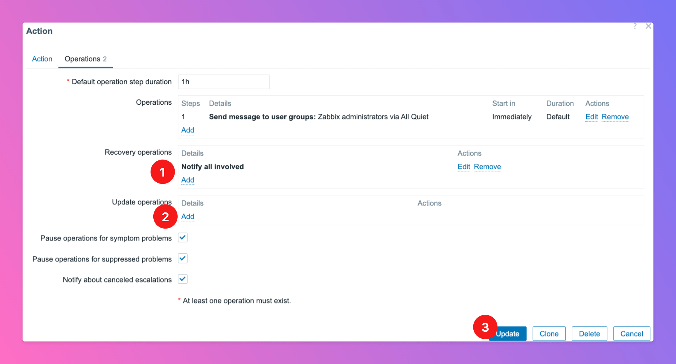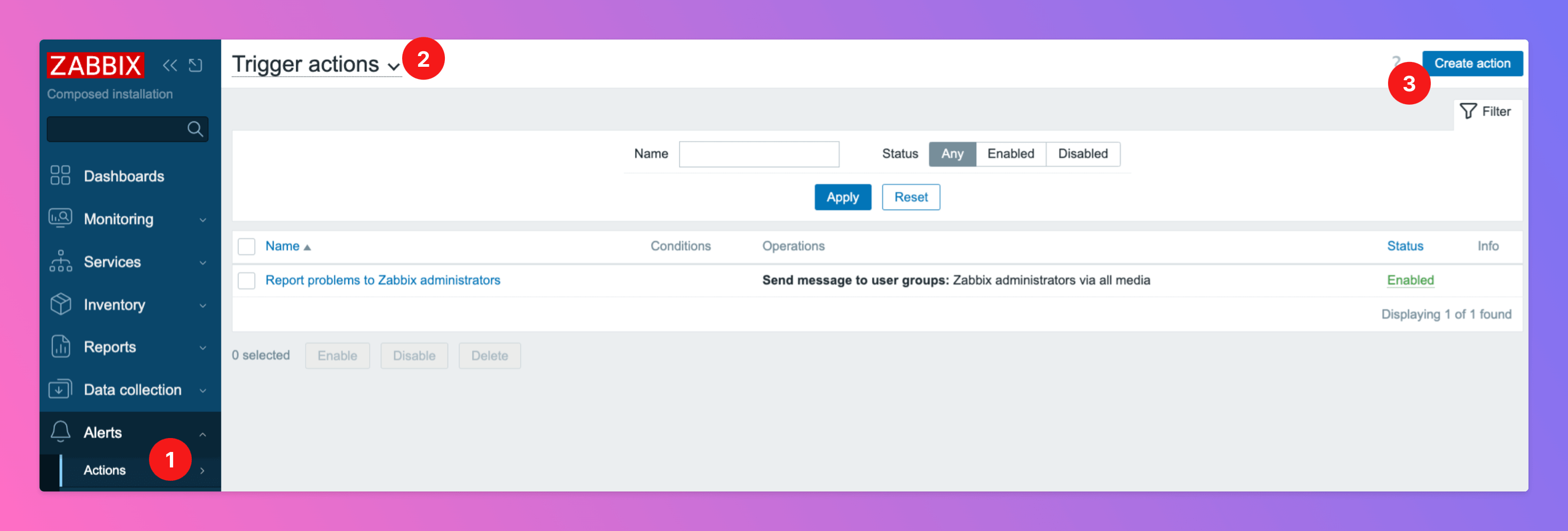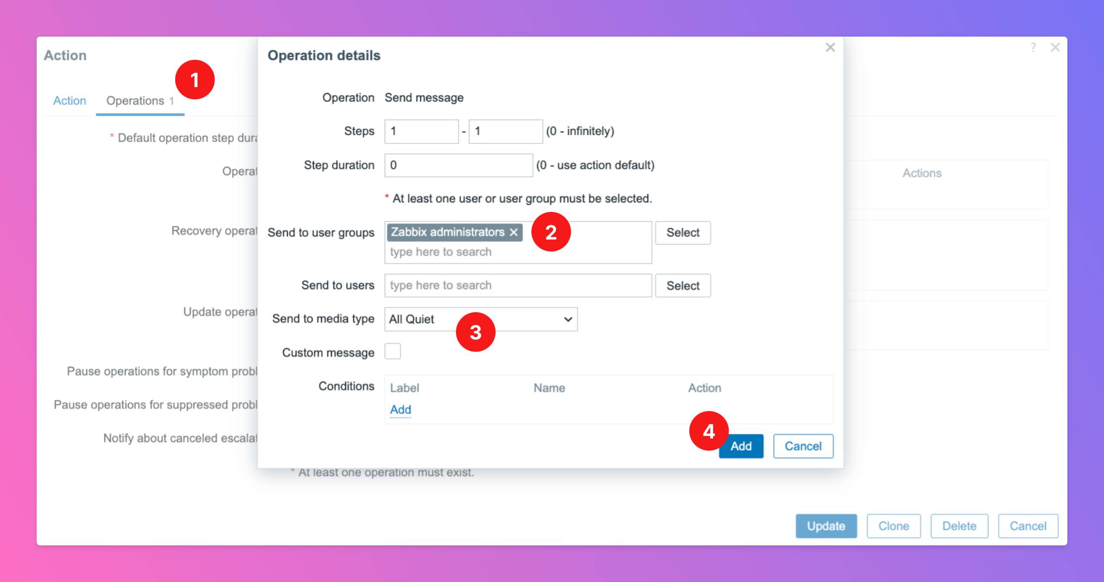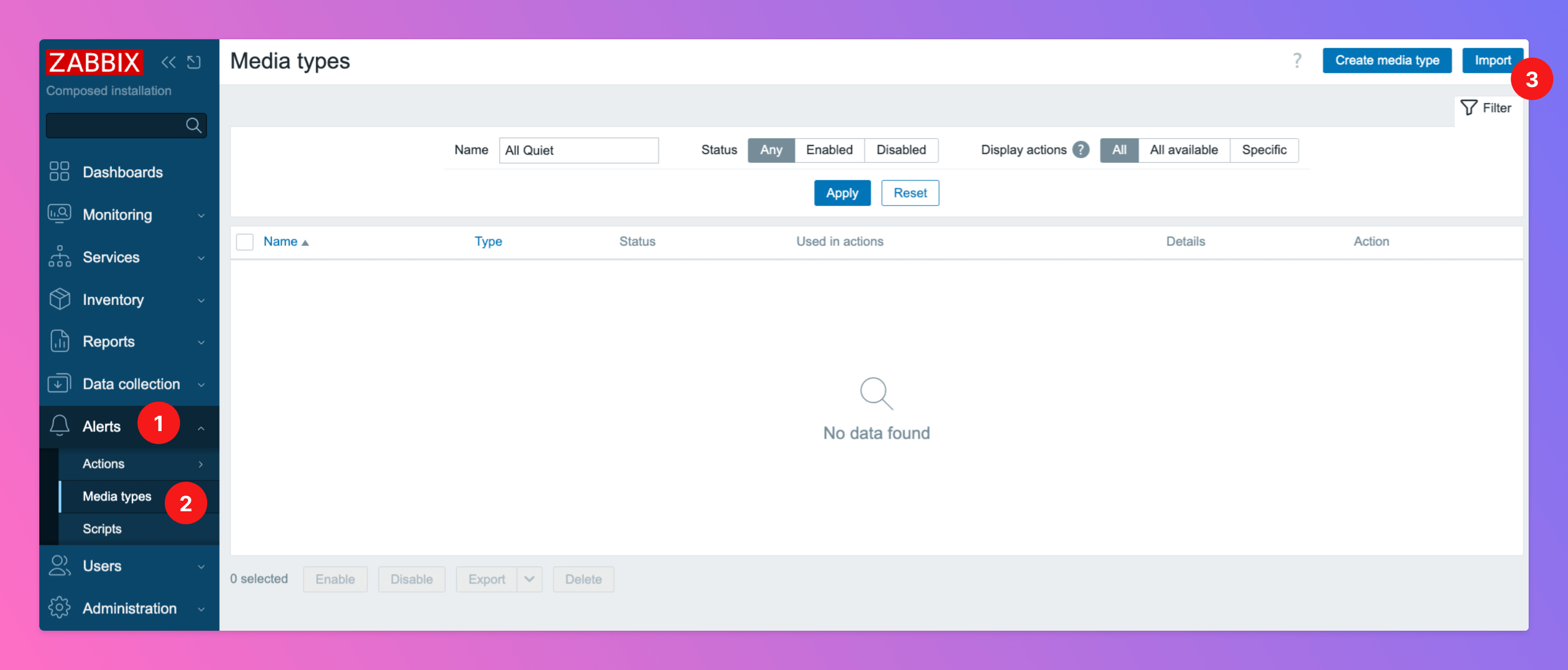 Now it’s time to create a trigger to connect Zabbix alerts with All Quiet, using the user we just created.- Open
