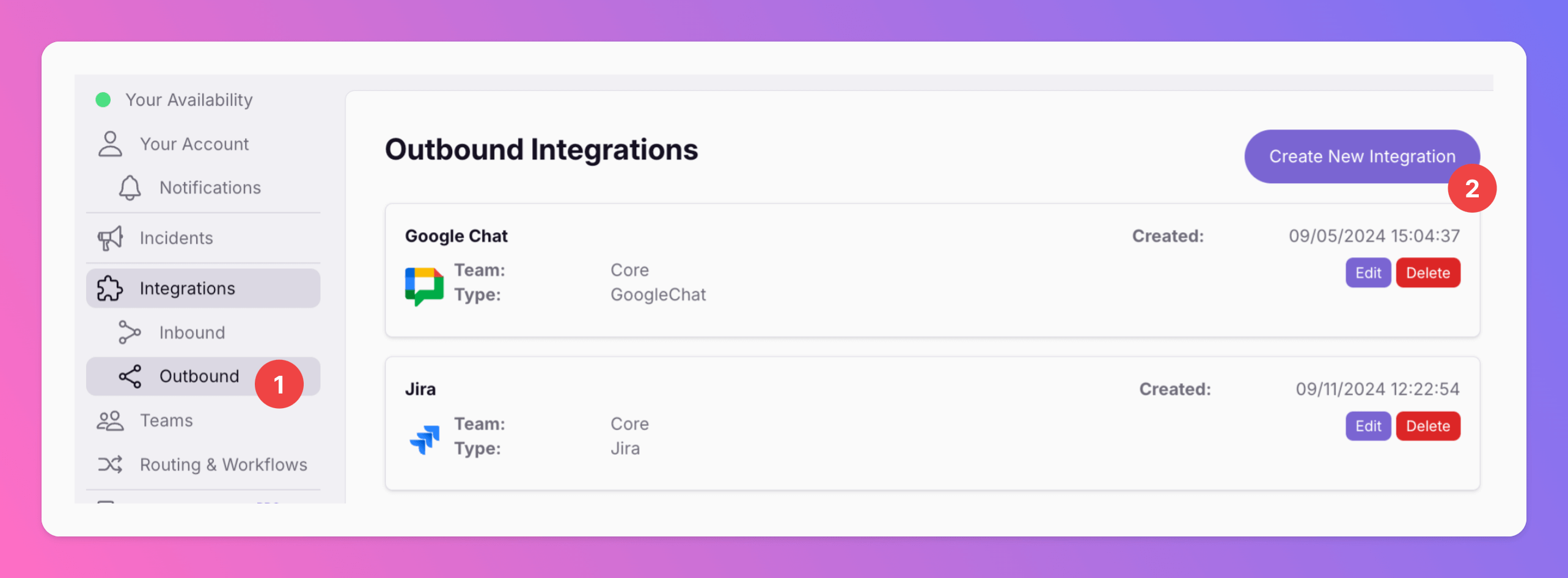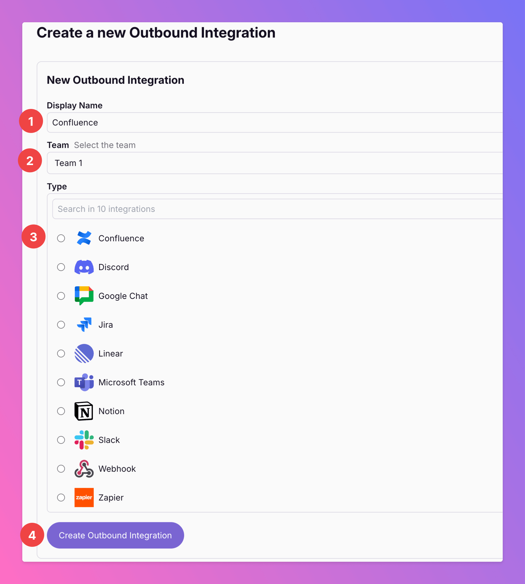 Integrations > Outboundto navigate to the outbound integrations page. - Once you’re on the Outbound Integrations page, click on