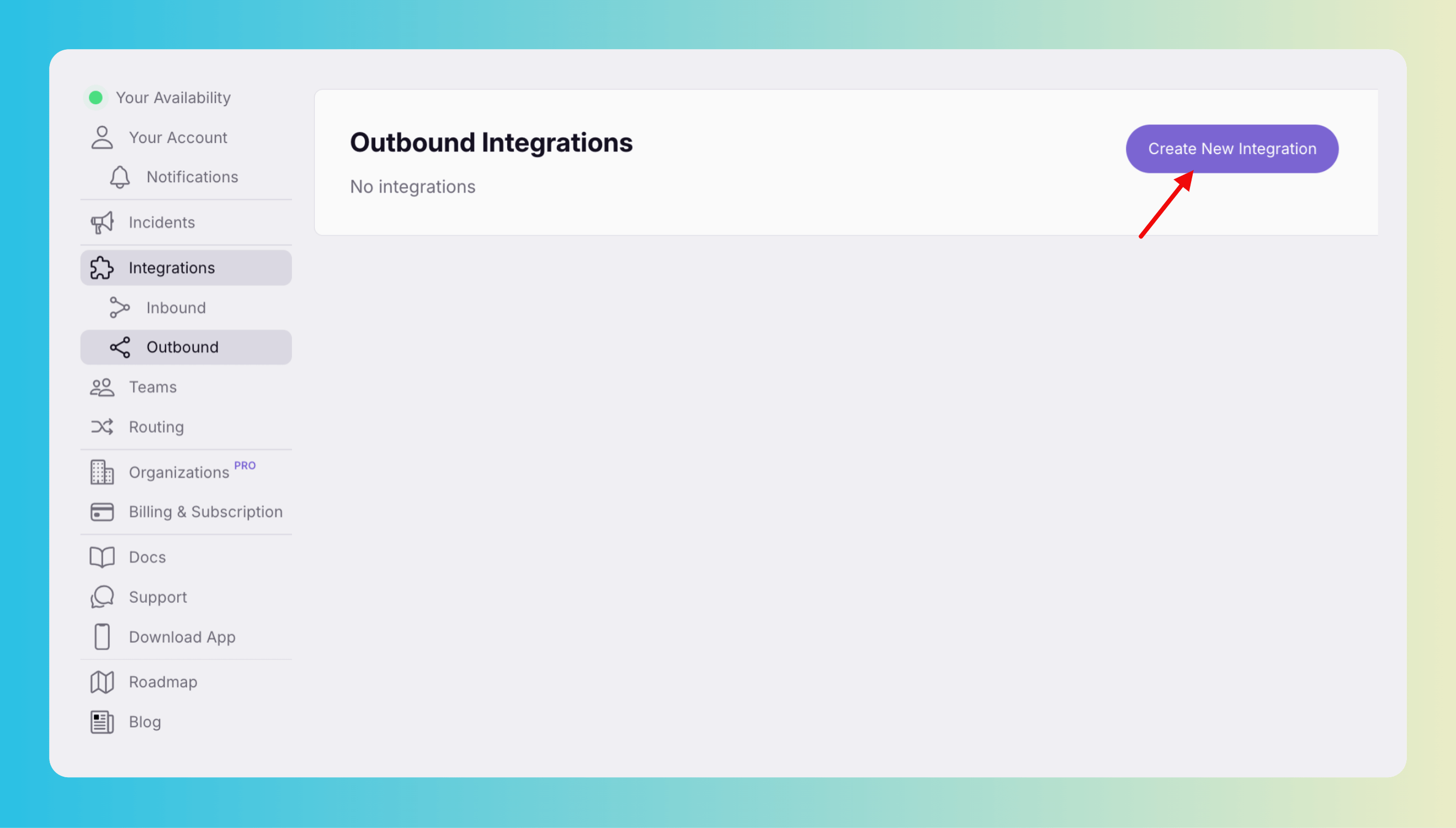 to navigate to the outbound integrations page. - Once you’re on the Outbound Integrations page, click on