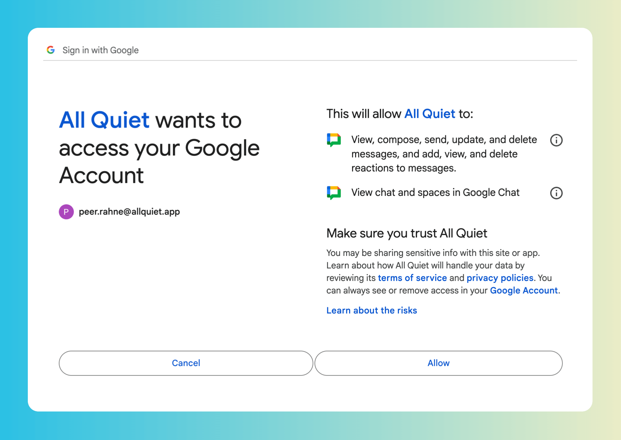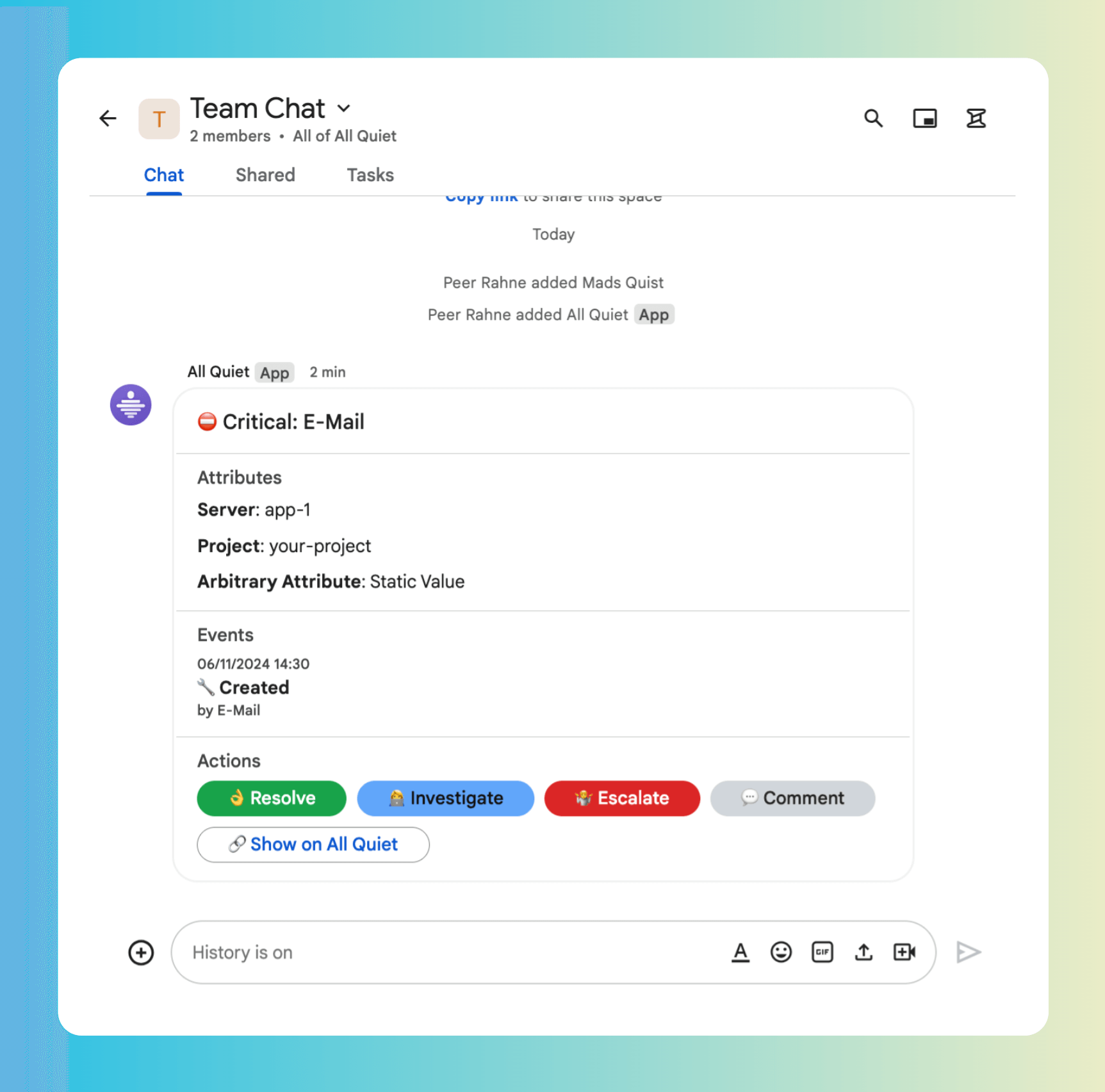 Google Chat is now integrated with All Quiet, simplifying incident management by consolidating notifications and actions in one place.