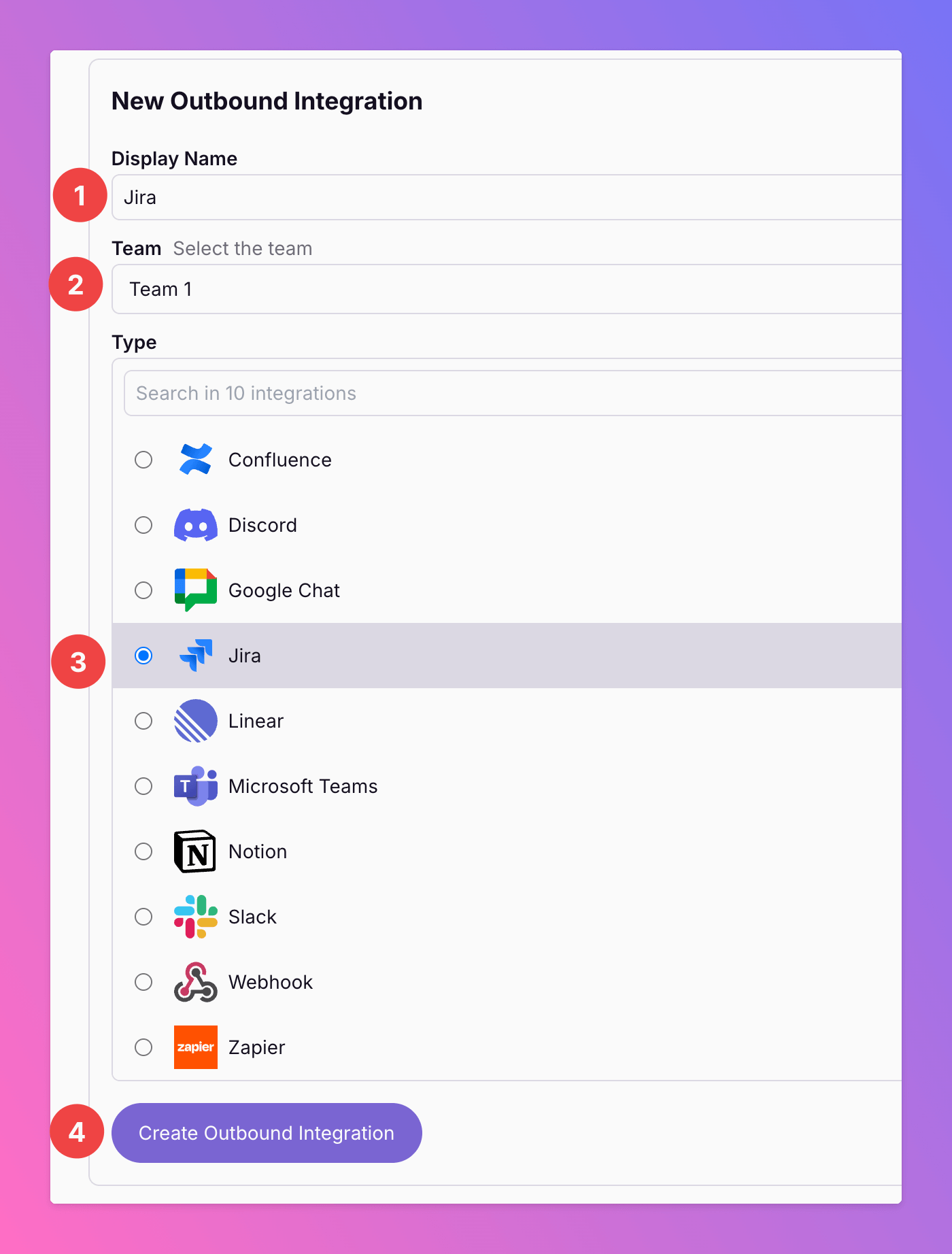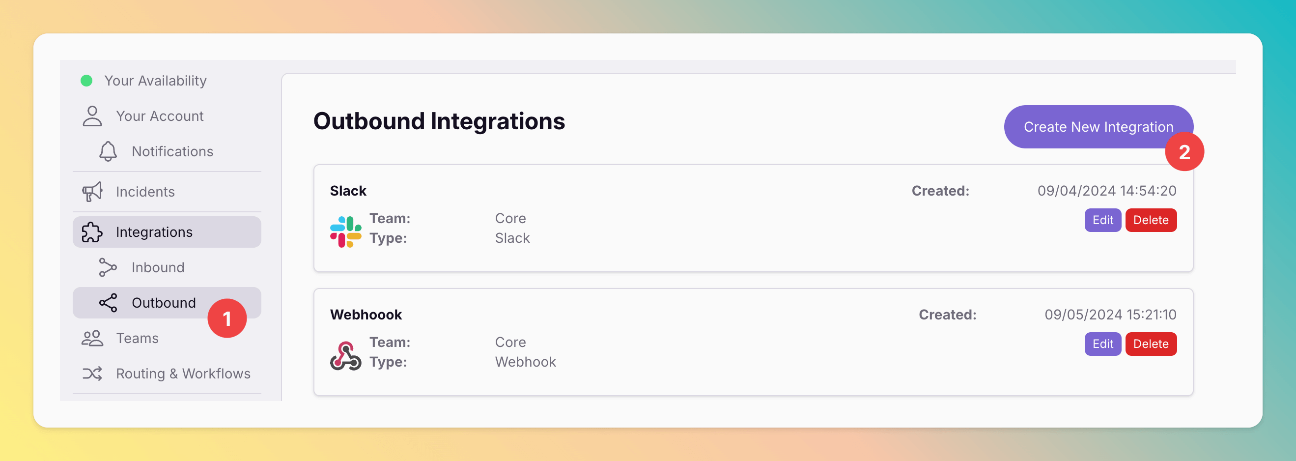 to navigate to the outbound integrations page. - Once you’re on the Outbound Integrations page, click on
