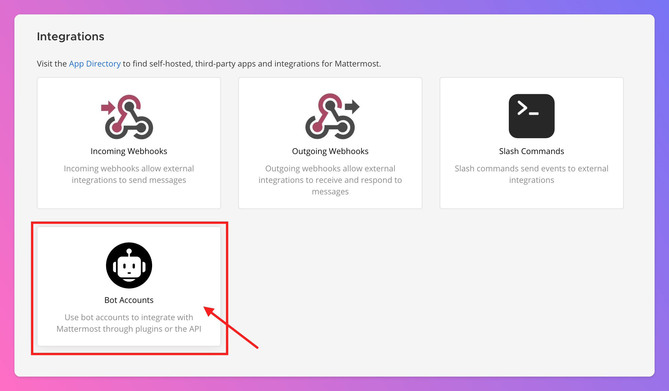 Bot Accounts as integration type.