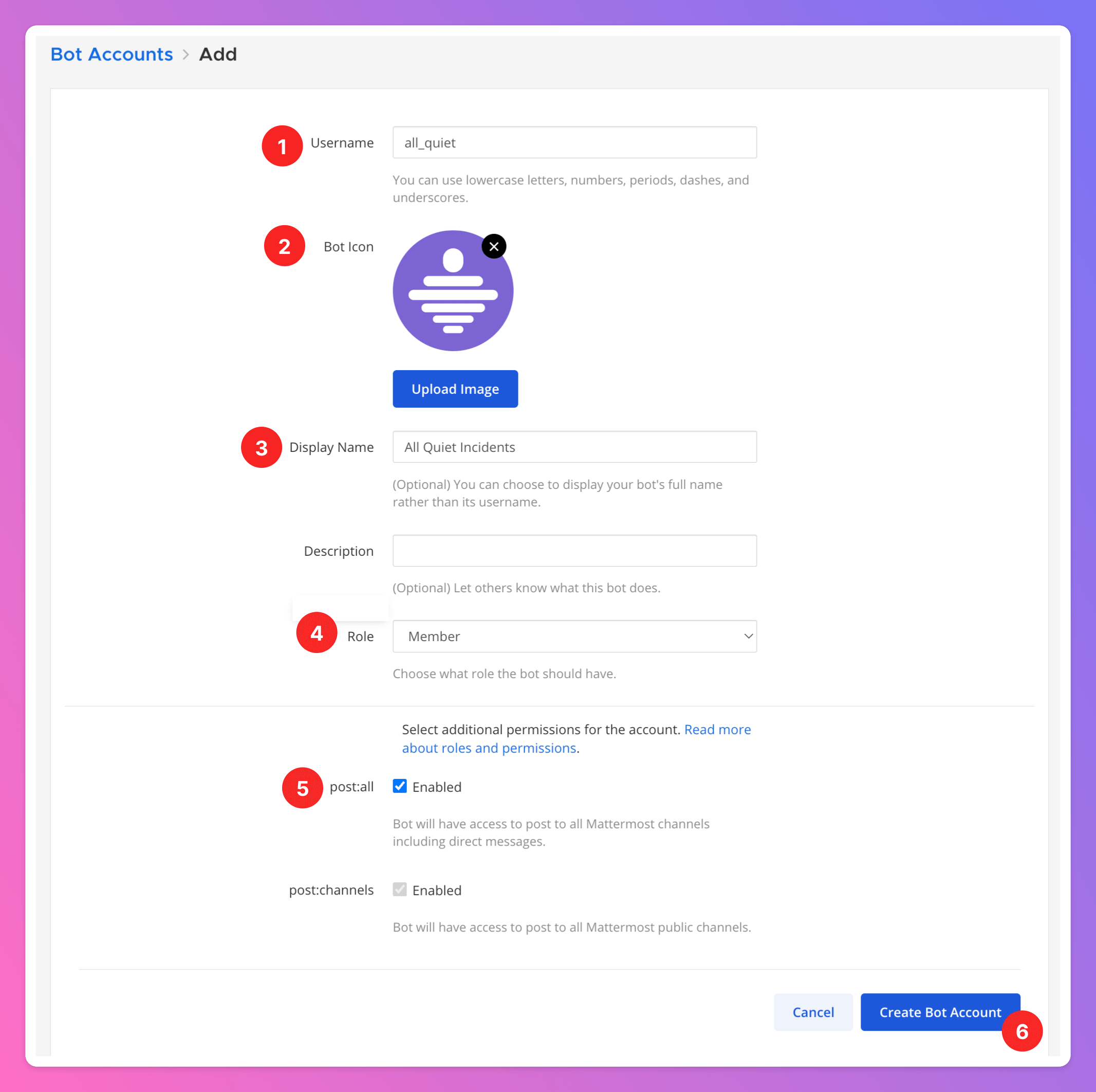Create Bot Account.